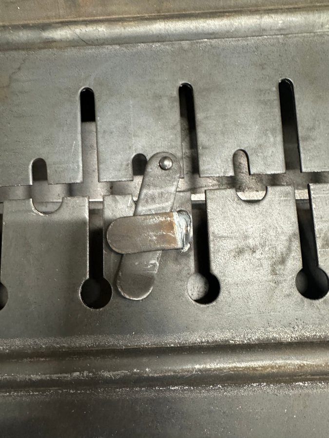 Довгі стінки (стулки) мангала мають певні виступи, які називаються виштамповками, вони служать для підвищення міцності довгої стінки. Ці стінки мають два рівні для установки шампурів. Один рівень – розміщений на гранях стінок – стандартний рівень, який є абсолютно на будь-якому мангалі. Другий рівень - додатковий, він може бути дуже корисним у таких ситуаціях: