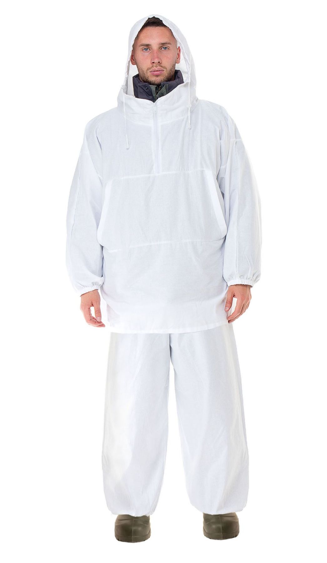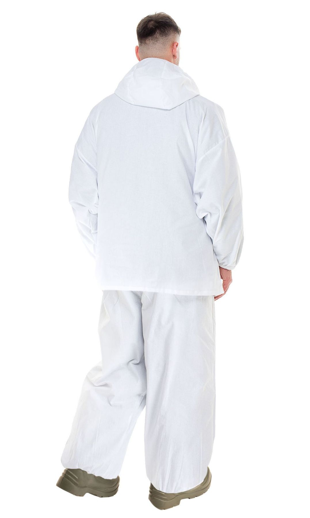 Призначений для маскування в зимовому лісі, на засніженому полі. Одягається поверх зимового утепленого одягу. Виготовлений з матеріалу шовк з водовідштовхувальним просоченням. У ньому Ви не будете чіплятися за гілки дерев.