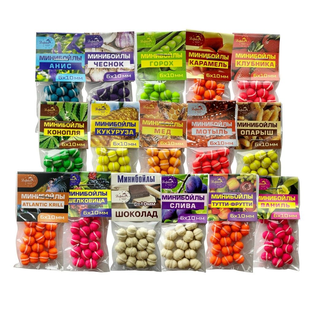 Міні бойли бувають плаваючі і тонучі, випускаються в діаметрах від 6 до 10 мм і мають різні смаки.