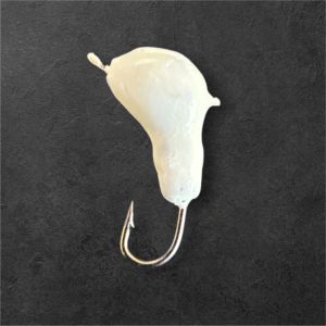 Мормишка фосфорна при денному світлі яскраво біла, для свічення в темряві - її потрібно підзарядити ліхтариком або зарядити від денного світла. У темряві, коли вона заряджена – світиться світло-салатовим кольором. Червона точка на мормишці є додатковим подразником провокуючим рибу на клювання. Цю мормишку можна використовувати в будь-який час доби.