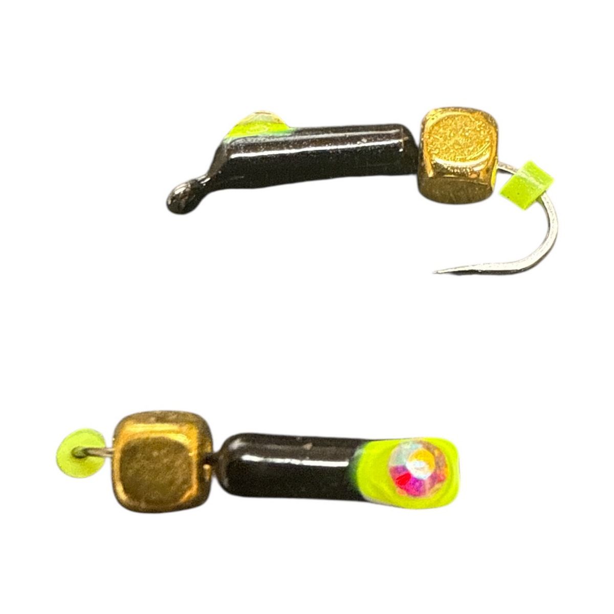 - Мормишка Гвоздик з кубиком працює за тим же принципом, що і з металевою кулькою або намистиною, тільки замість кульки на цівці гачка встановлений металевий куб. Уловистість цієї мормишки така сама, як і у мормишки з кулькою.