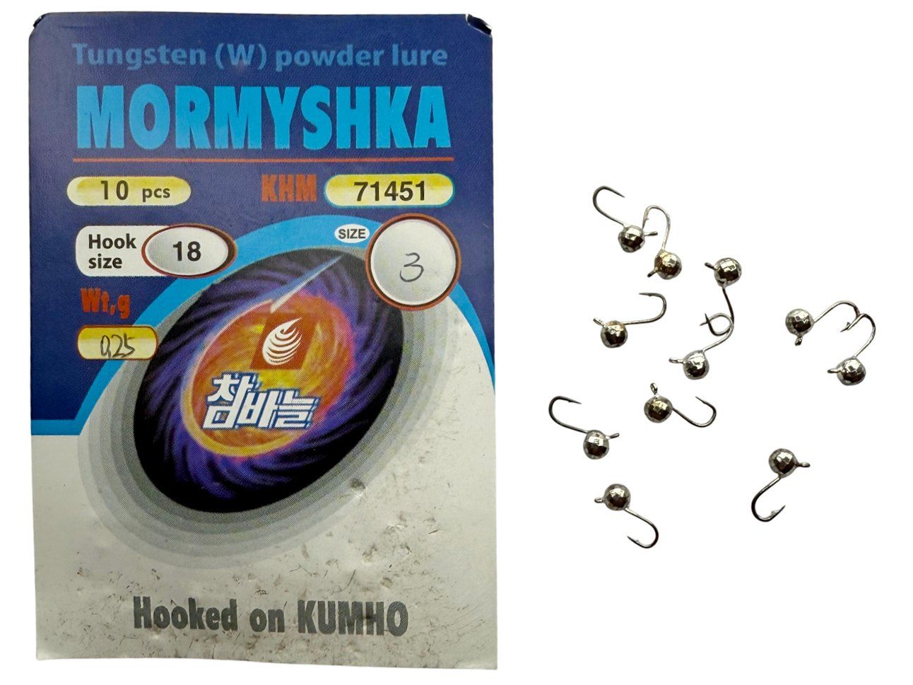 Мормишка вольфрамова - Куля Гранена - Прибалтика - Срібло - 10 шт/уп - 0.25 г, Гачок: Kumho №18