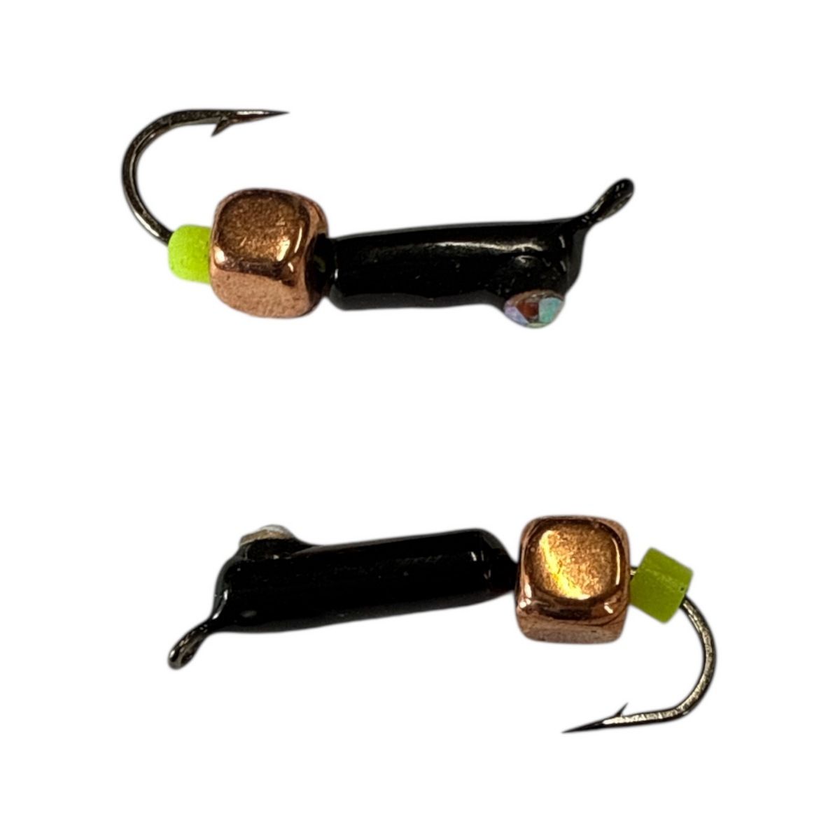 Мормишка виконана з вольфраму, завдяки чому при компактних габаритах має велику вагу, тому швидко заглиблюється на необхідну глибину. Приманка дуже міцна та довговічна.