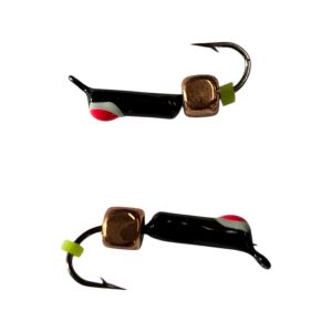 - Мормишка Гвоздик з кубиком працює за тим же принципом, що і з металевою кулькою або намистиною, тільки замість кульки на цівці гачка встановлений металевий куб. Уловистість цієї мормишки така сама, як і у мормишки з кулькою.