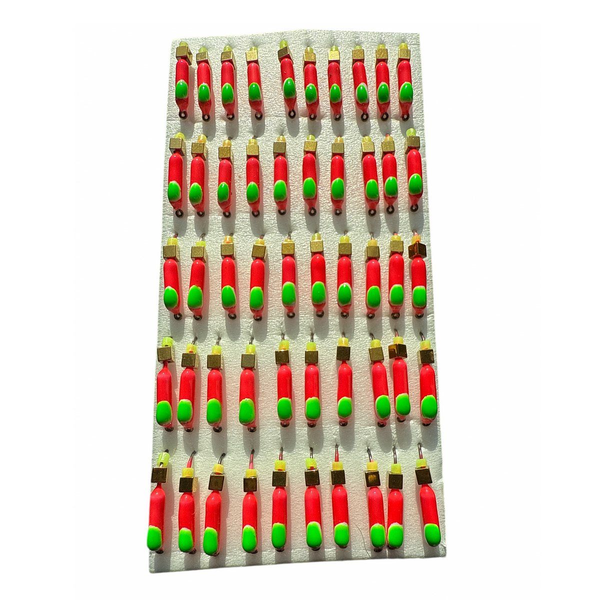 - Колір: Червоний з біло-зеленою крапкою.