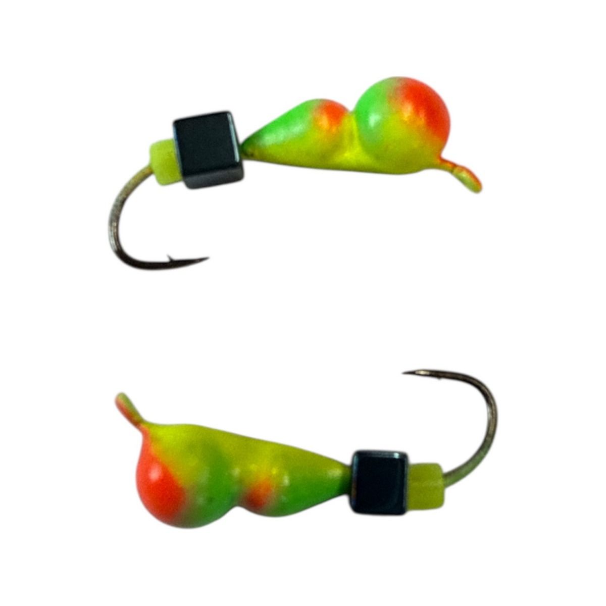 Модель комплектується надгострим одинарним гачком японського виробництва, що гарантує надійне засічення і високий відсоток результативних клювань. Для кріплення до волосіні мормишка оснащена спеціальною петелькою. При її виробництві використовувався метод порошкової металургії, завдяки чому приманка дуже міцна та довговічна.