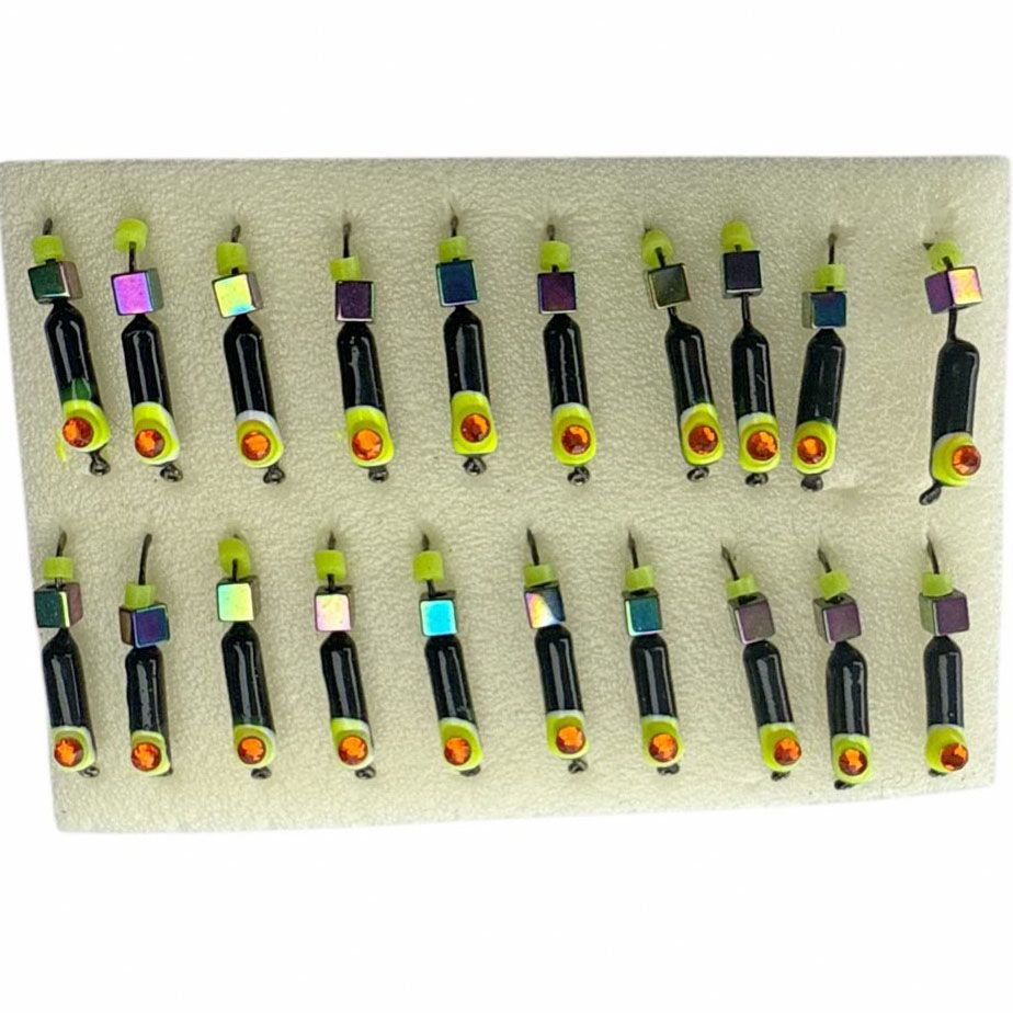 Мормишка Вольфрамова Володимирська Гвоздик - З кубиком хамелеон - 2.5 мм - 0.5 г - Чорний з жовтою точкою та каменем - Арт.605