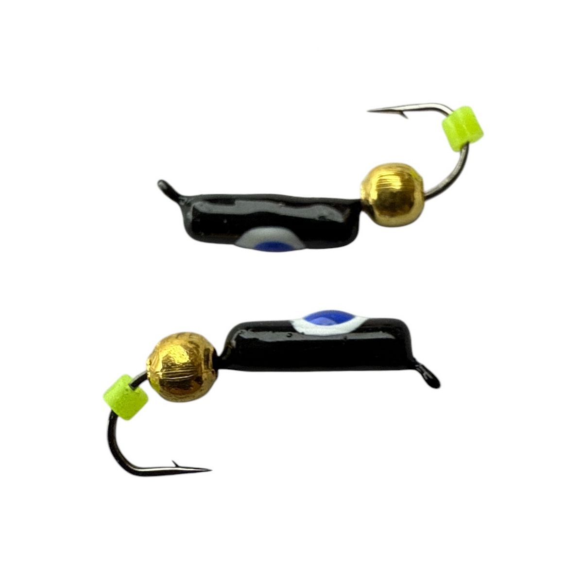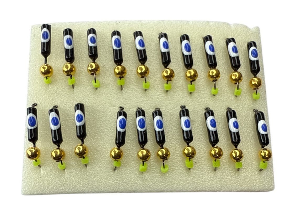 Мормишка Вольфрамова Володимирська Гвоздик - З кулькою золото - 2.5 мм - 0.5 г - Чорний з біло-синьою точкою - Арт.640