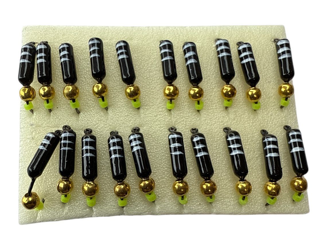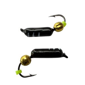 Мормишка Вольфрамова Володимирська Гвоздик - З кулькою золото - 3 мм - 0.7 г - Чорний з білими смужками - Арт.641