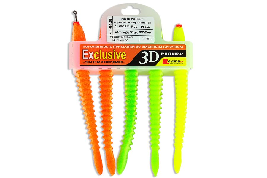 Набір змінних поролонових приманок Levsha NN 3D ExWorm - Колір Fluo WOr/WOr/WGr/WLgr/WYellow