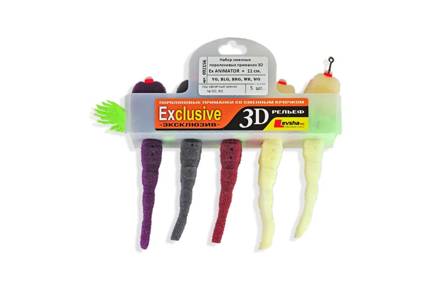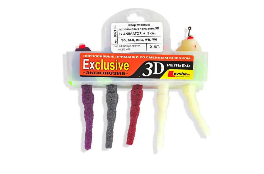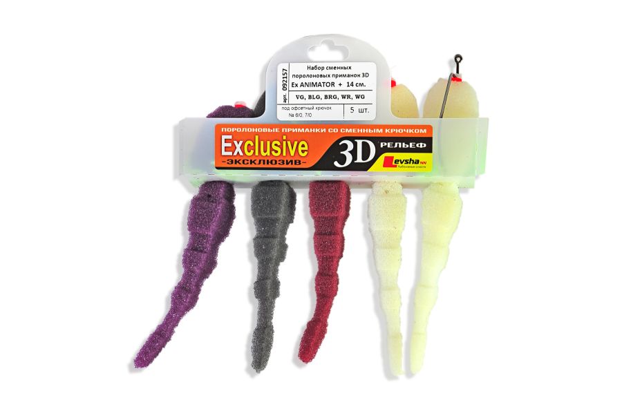 Набір приманок Рибка поролонова Levsha NN 3D Ex Animator+ - VG/BLG/BRG/WR/WG - Під офсетний гачок №3/0,4/0 - 5 шт/уп