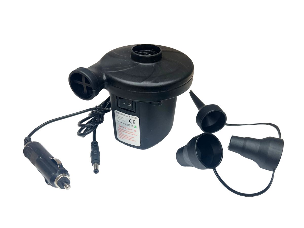 Насос працює від автомобільного прикурювача 12 В. Незамінний для туристів, що подорожують автомобілями. На природі дозволить відразу ж підготувати для плавання надувний матрац, кола та човни.