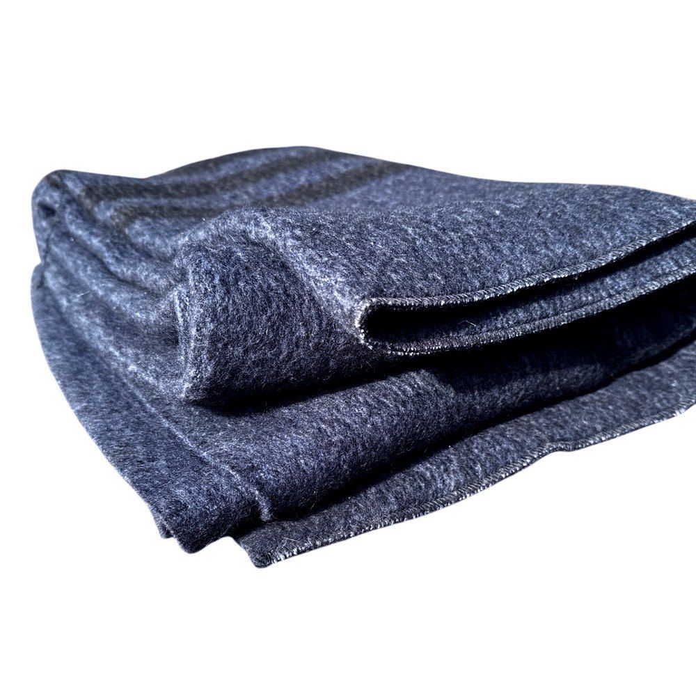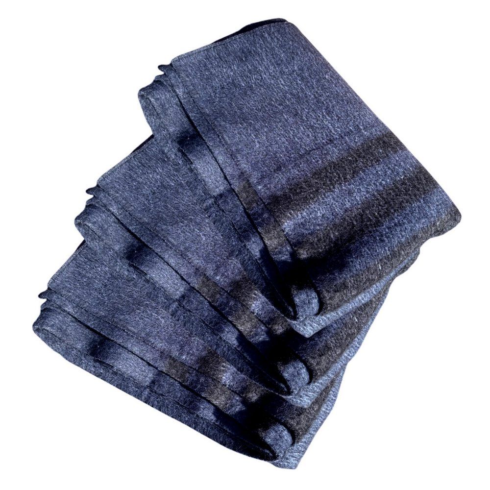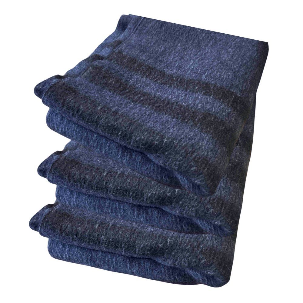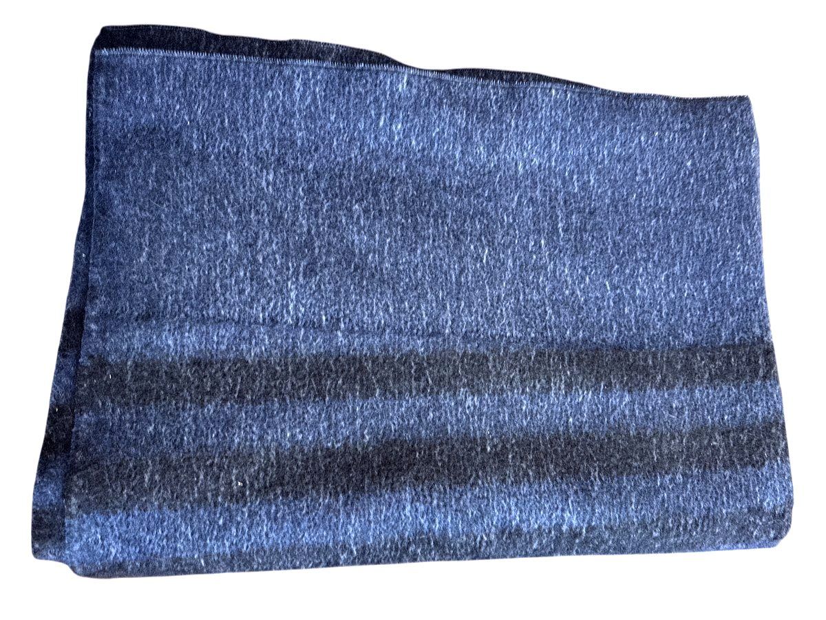 Ковдра напіввовняна армійська темно-синього кольору з темними смужками зігріє Вас холодними, зимовими вечорами.