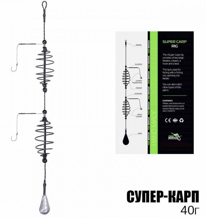Біля кожної годівниці на відводі прив'язаний гачок Kumho (Korea). Завдяки віднесеному вантажу від годівниць "Супер-Карп" є напрочуд ефективним при лові на мулистому дні.