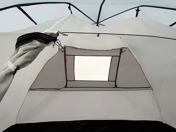 - Москітні сітки на вході та вікнах: Захист від комах та москітів, забезпечуючи свіжий повітряний потік усередині намету.