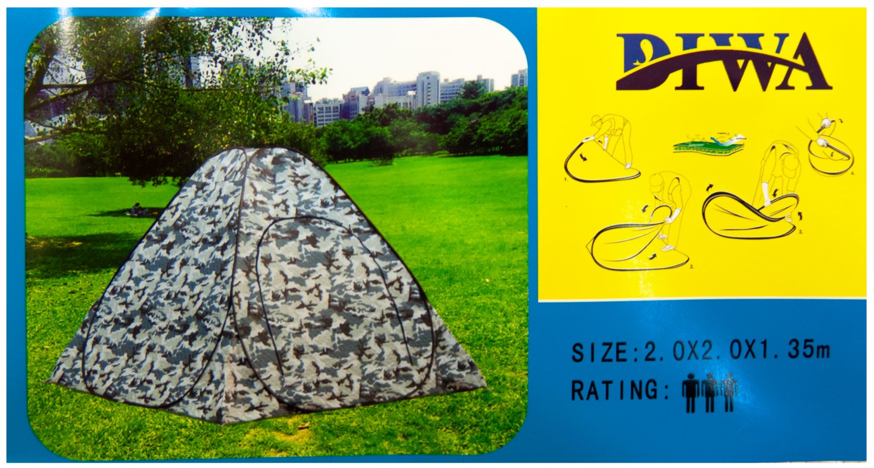 Зручний практичний саморозкладний намет DIWA. Може застосовуватися як взимку, так і влітку. Основна відмінність від інших зимових наметів, це закрите дно, в якому на блискавці відстібається отвір діаметром 70 см.