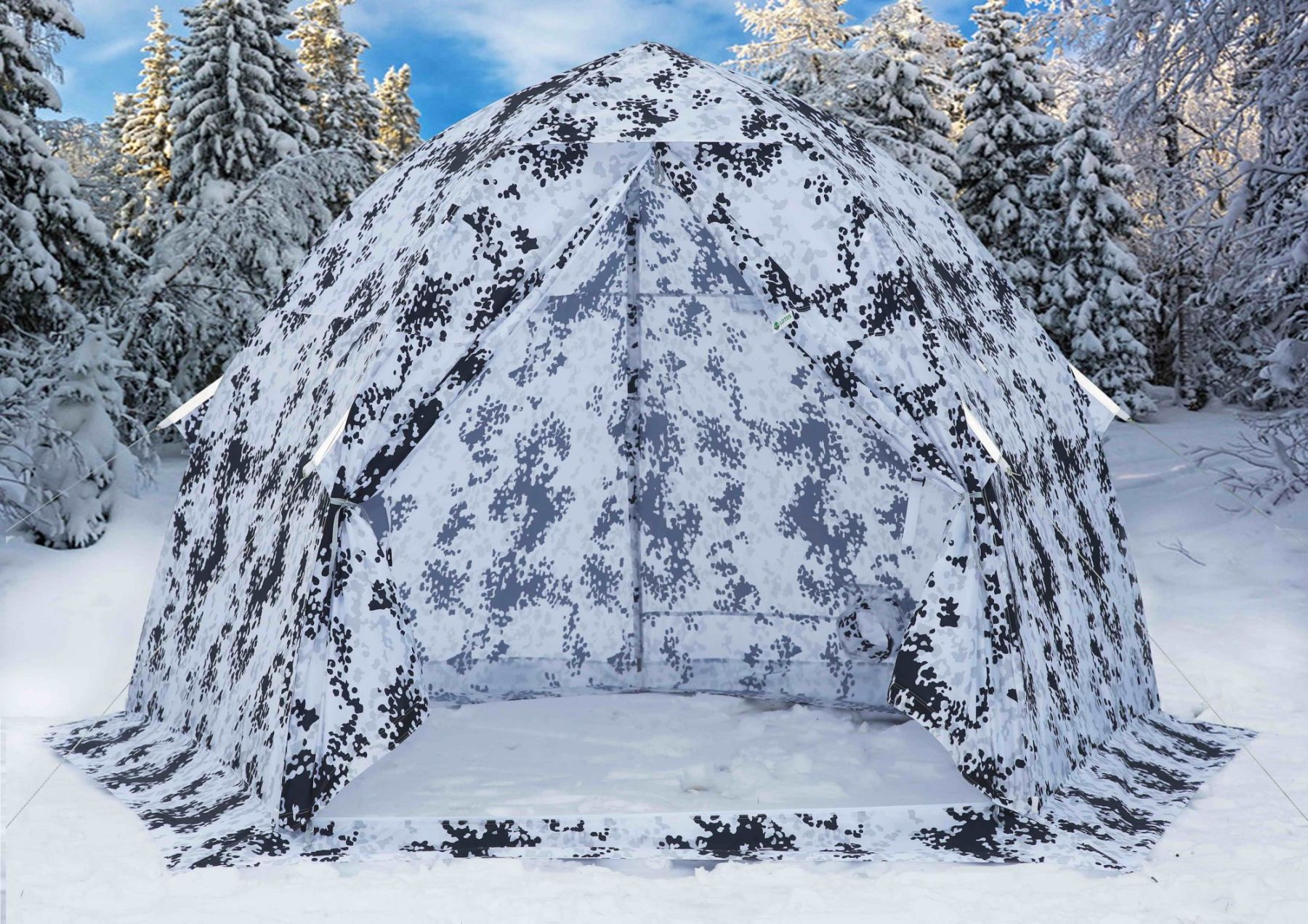 Камуфльовані зимові намети оцінять мисливці, рибалки і просто туристи мандрівники. Маскувальна зимова палатка Лотос досить світла навіть для тьмяного зимового сонця або зоряної ночі, в ній буде видно навіть без додаткового освітлення, що позитивно позначається на непомітності і економії освітлення. Крім маскувальних характеристик намет має високу стійкість і надійність в екстремальних умовах природи. Всі механічні компоненти протестовані і вдосконалені відповідно до рекомендацій мисливців і рибалок, що користуються наметами Лотос.