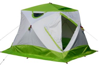 Намет ЛОТОС Куб 4 Компакт Термо (лонг) оснащений унікальним запатентованим тентом, який характеризується підвищеним показником теплоізоляції і міцності.