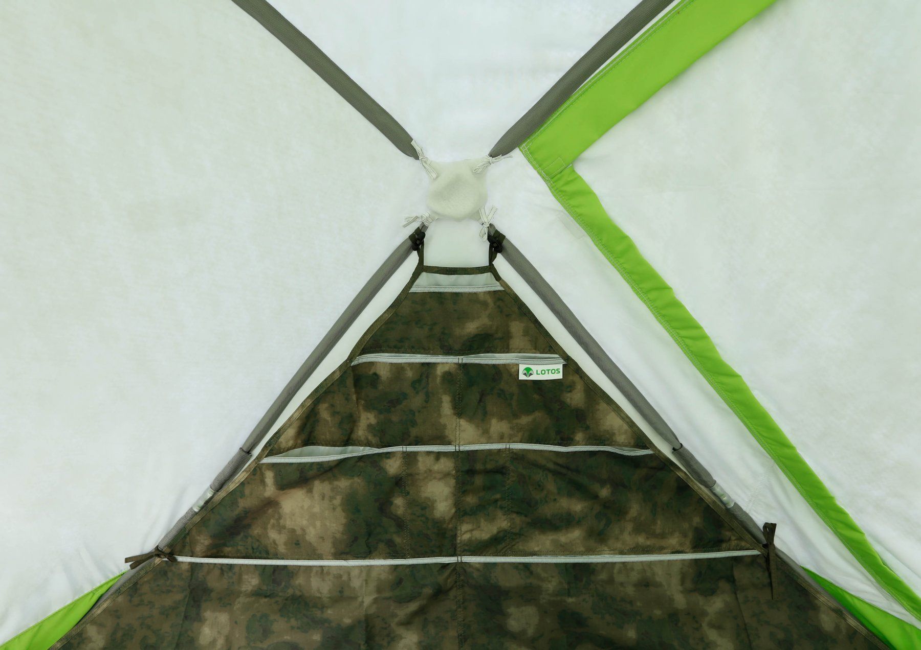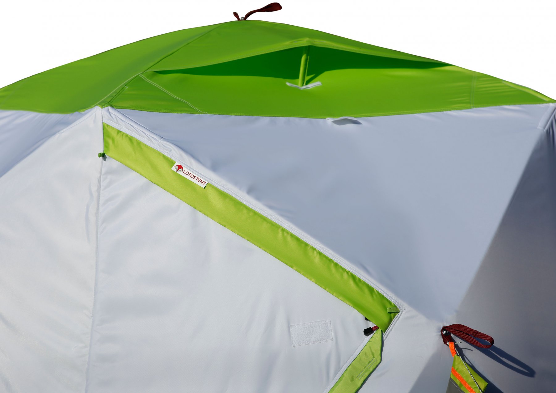 Унікальний теплоізоляційний тент високої герметичності (дверні блискавки захищені двосторонніми утепленими планками) практично не продуваємі вітром і за рахунок високого ККД теплоізоляції забезпечить користувачам домашній комфорт навіть в екстремальні морози. Теплоізоляційний тент "ЛОТОС", що складається з трьох шарів із суцільними повітряними зазорами (близько 1,0 см) по всій площі поверхні деталей тенту, значно перевершує за відносним рівнем теплоізоляції традиційні тришарові тенти з "термостежкою", в яких ефективна площа повітряного зазору між шарами істотно зменшується через численні скріплюючі шари тенту спайок, що працюють ефективними «містками холоду».
