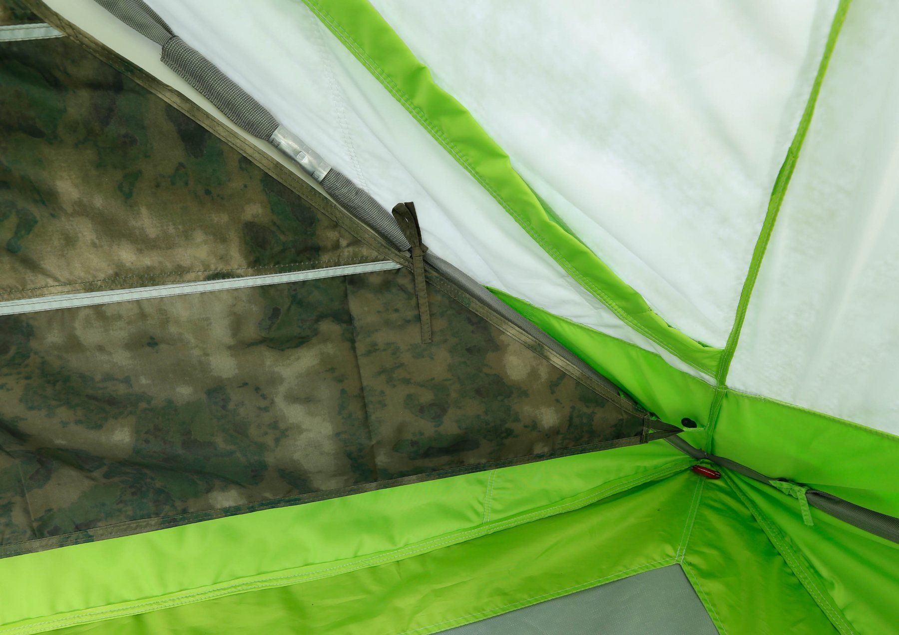 Кріплення палатки до гідроізоляційного дну здійснюється за допомогою кріпильних петель, які розташовані під зовнішньої спідницею. Зовнішня спідниця додатково кріпиться "липучкою" в її середній частині, тим самим фіксуючи бортики гідроізоляційного дна у вертикальному положенні.