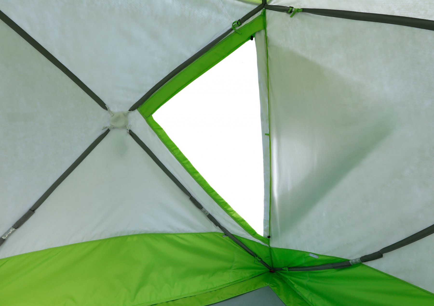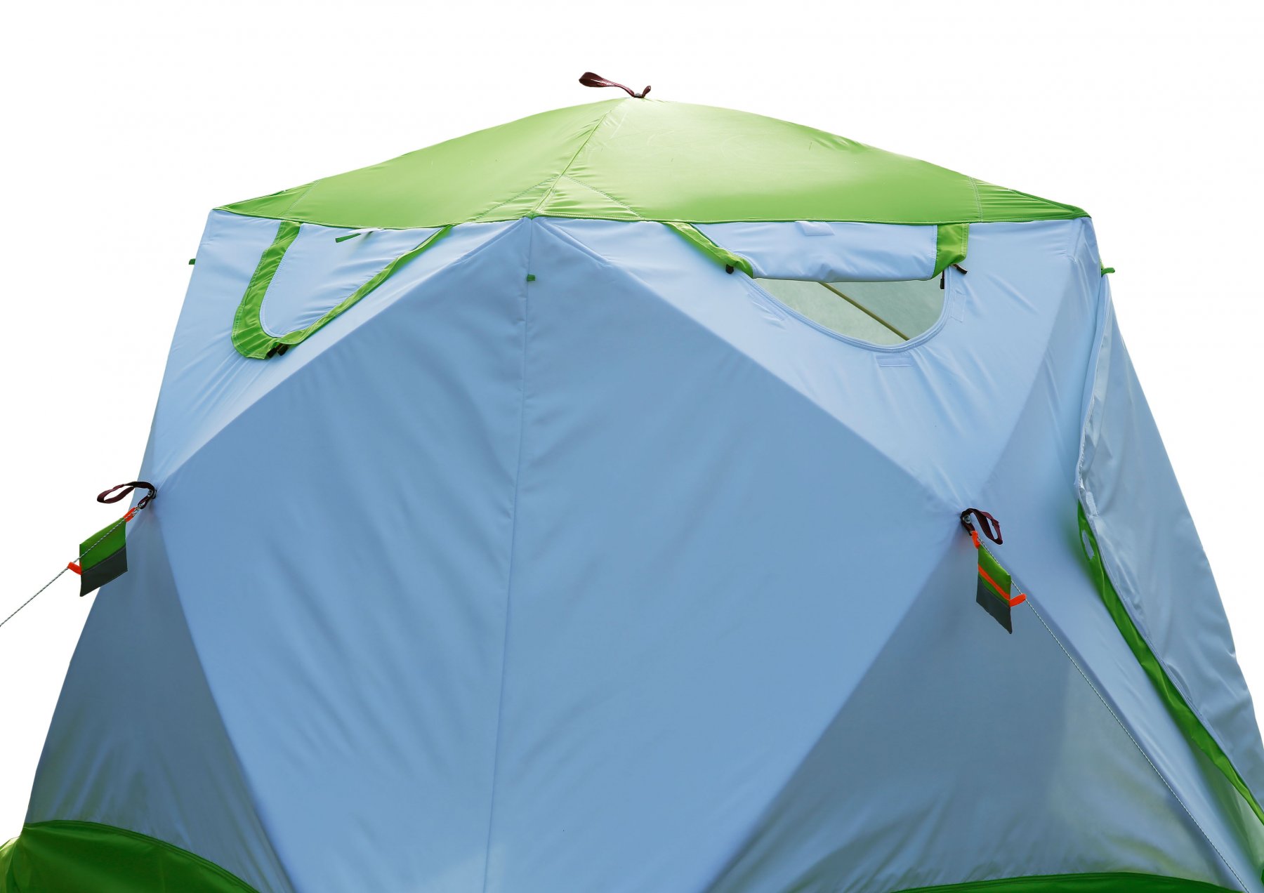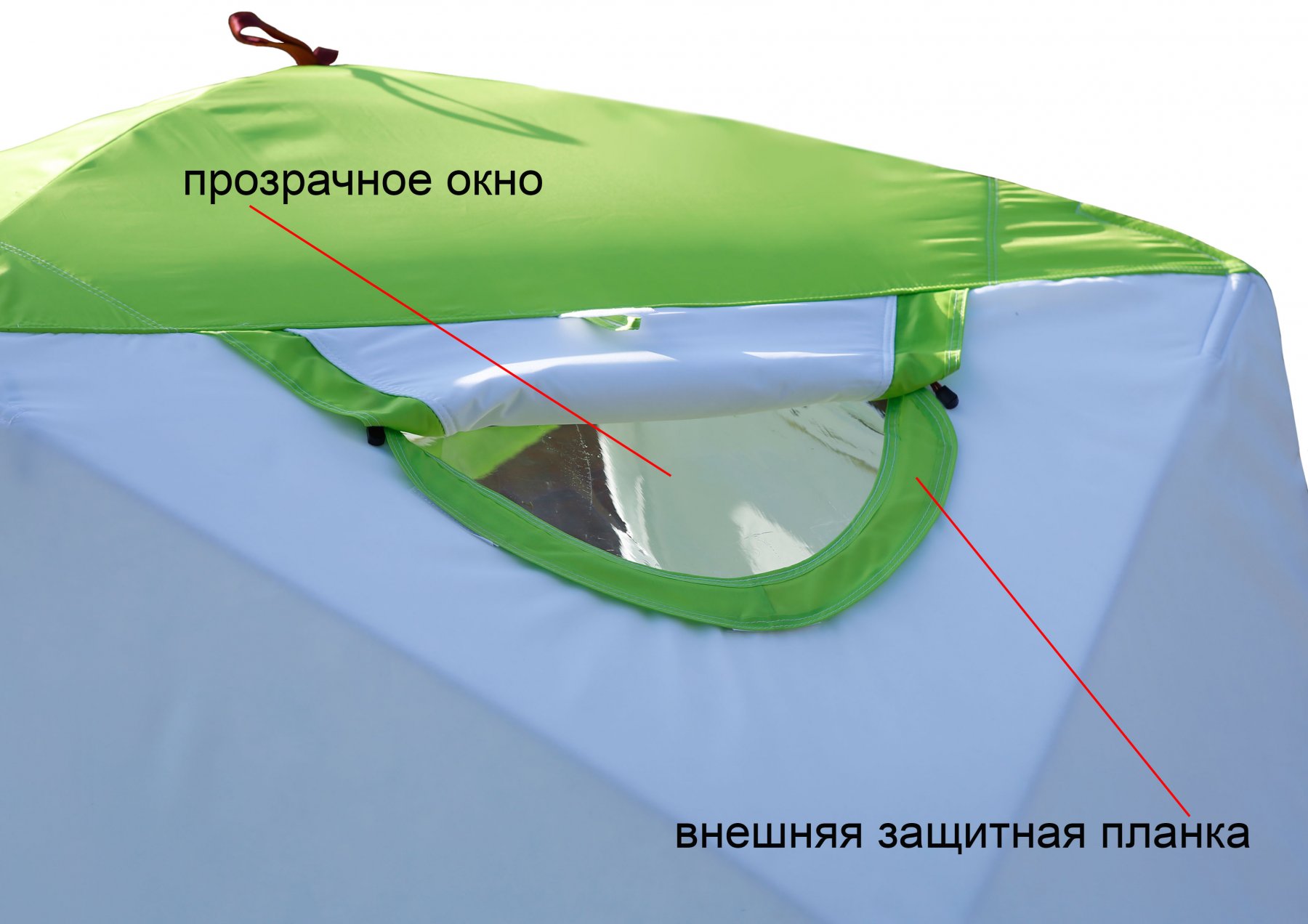 Знімне прозоре вікно виготовлене з високоміцної морозостійкої поліуретанової плівки товщиною 350 мікрон. Вікно кріпиться з внутрішньої сторони намету на "липучках" і оснащено зовнішньою захисною планкою, яка охоплює нижній край віконного отвору палатки і кріпиться на "липучках" зовні. Система кріплення прозорого вікна щільно фіксує його на тенті, має високу герметичність, надійно захищаючи віконний отвір палатки від продування вітром і зовнішніх опадів.