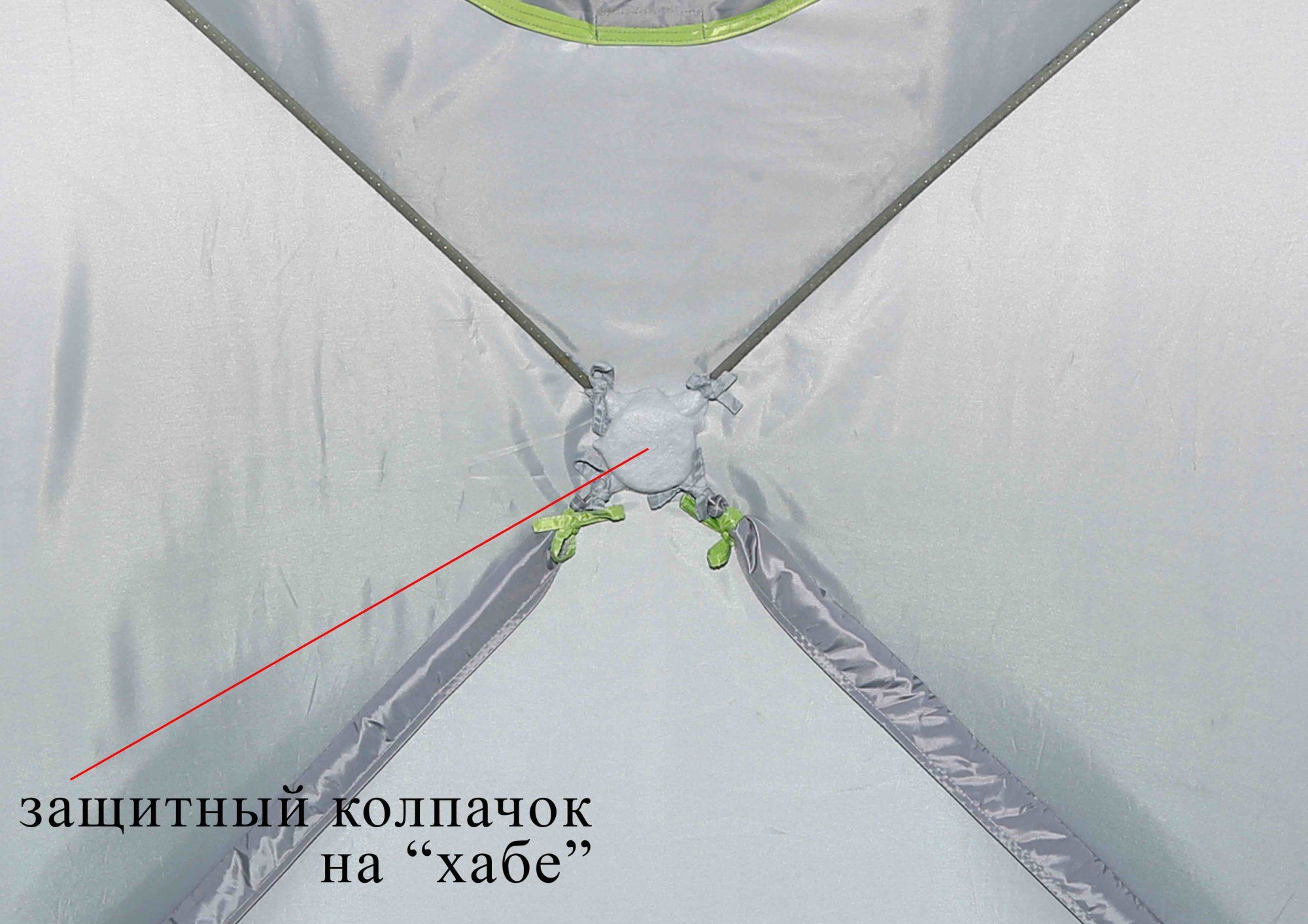 Всі п'ять "хабів" каркаса закриті з внутрішньої сторони захисними ковпачками. Ковпачки на "хабах" виготовлені з м'якого демпферного матеріалу і ефективно захищають тент намету від пошкодження "хабами" каркаса при її складанні. Також, закриті ковпачками "хаби" не ушкоджують сумку намети при транспортуванні. Зовнішня вітрозахисний спідниця оснащена вісьмома посиленими кріпленнями для ввертиш.