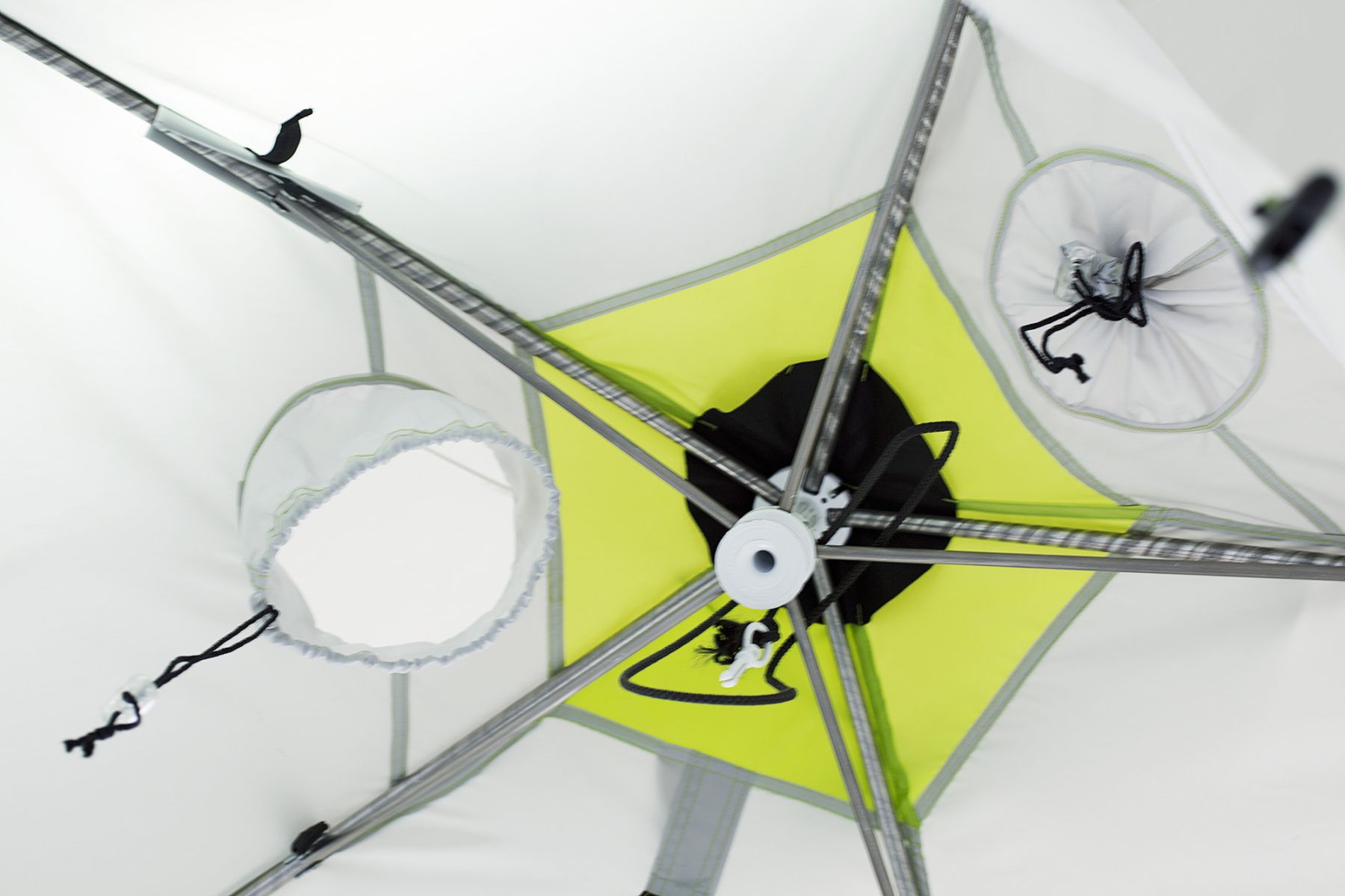 Ексклюзивний, запатентований механізм зонтичного типу забезпечує швидке і ефективне розкриття і установку. Досвідченому користувачеві буде потрібно не більше 15 секунд на розкриття, і не більше 30 секунд на складання намету в сумку-чохол (без урахування розтяжок).