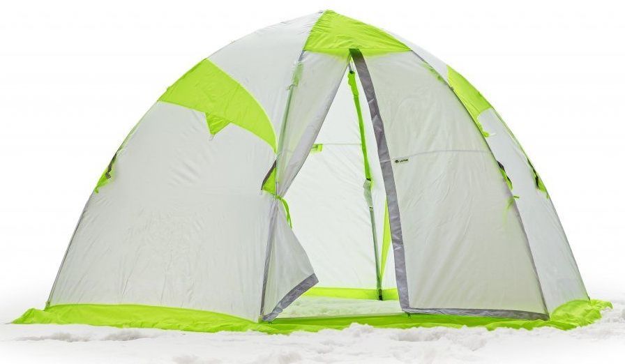 Конструкція намету передбачає максимально можливу кількість посилених кріплень для фіксації на льоду, що забезпечує здатність витримувати дуже високі вітрові навантаження до 21 м/с.