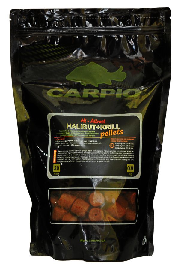 Пеллетс ТМ Carpio Hi-Attract Halibut+Krill – якісний короповий корм, який підійде для використання як наживкою, так і в ролі підгодовування.