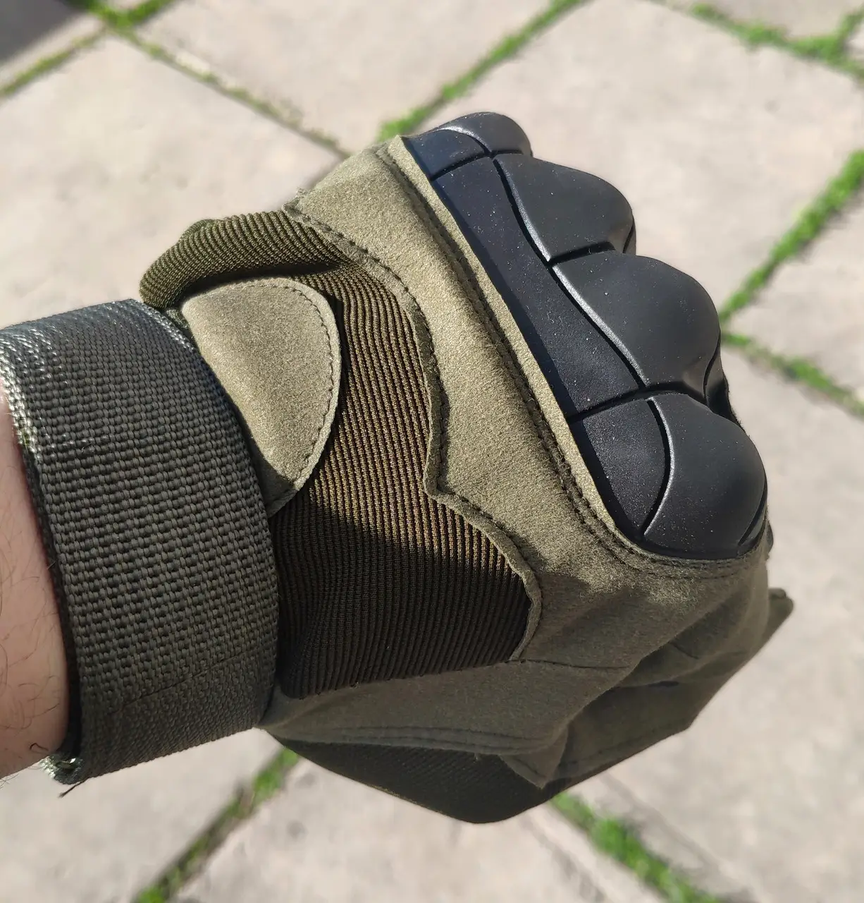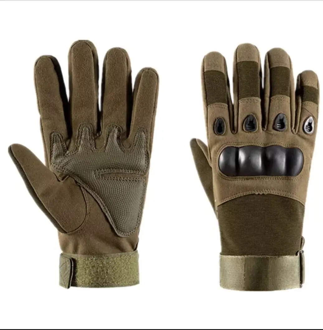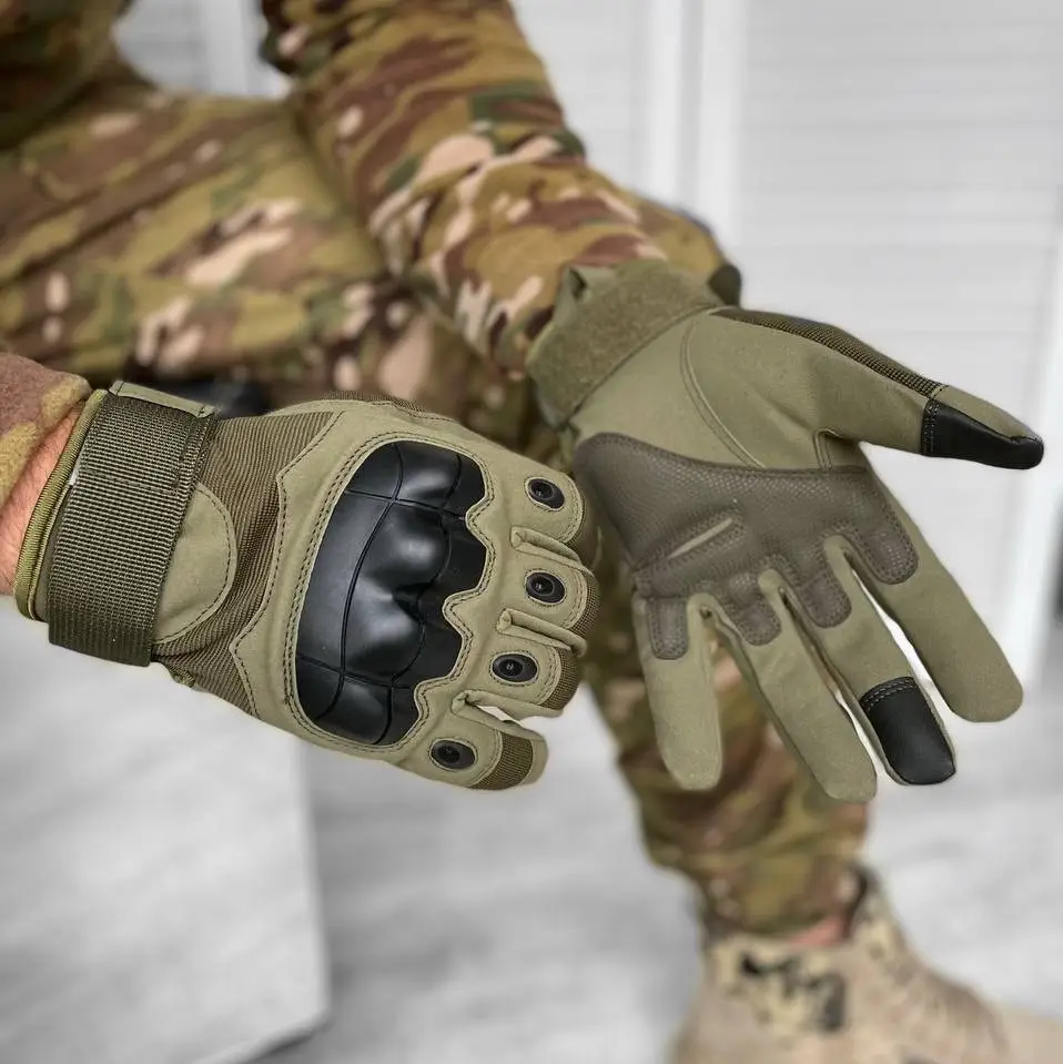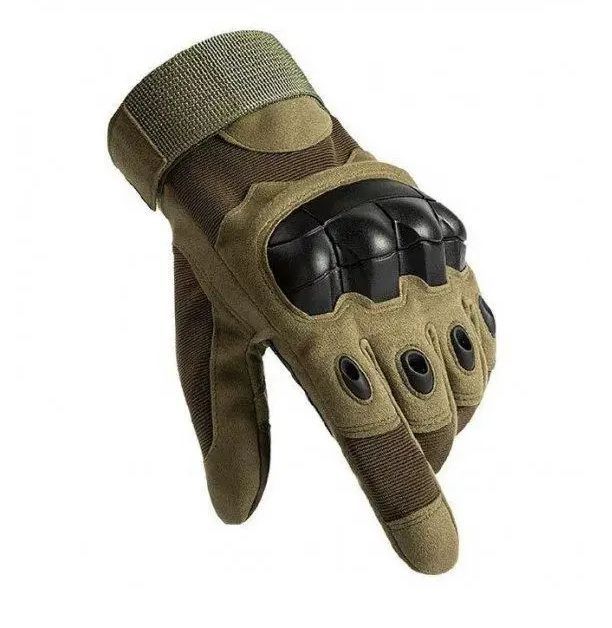 Рукавички тактичні - Закриті пальці - Посилений протектор - Карбонова вставка - Хакі