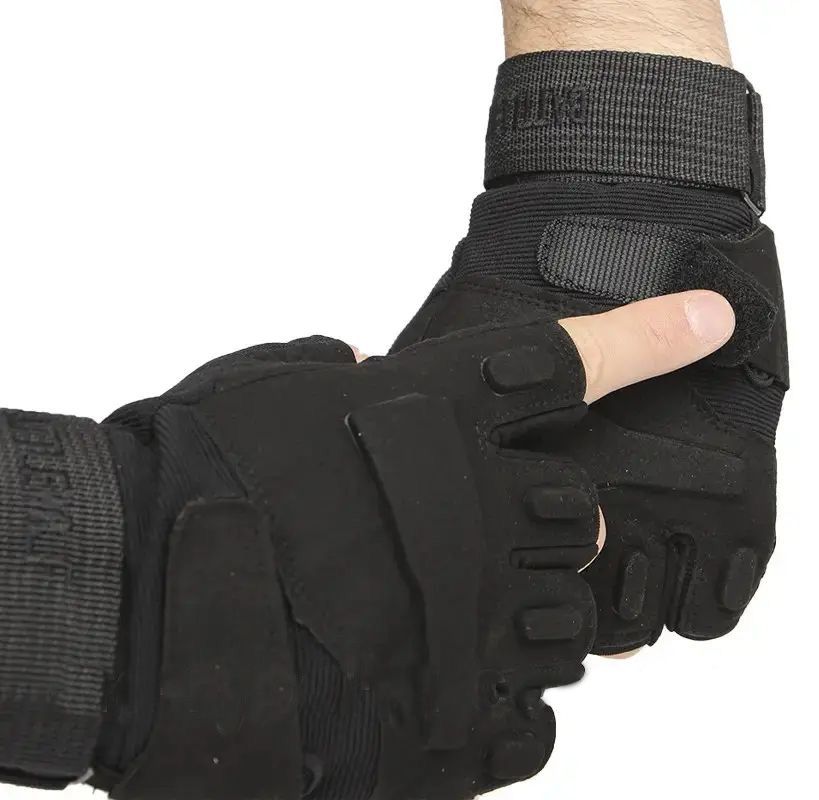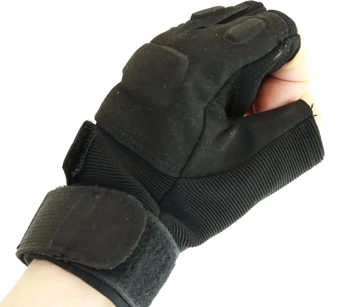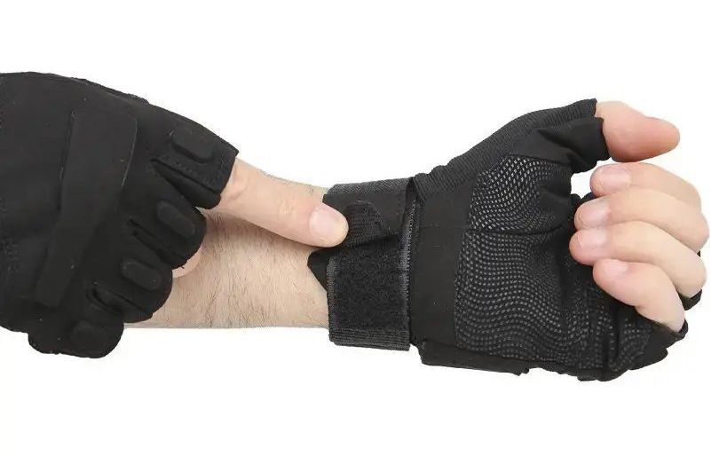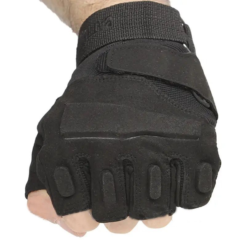 Спеціальні ущільнені накладки на кісточках пальців та зовнішній стороні кисті пом'якшують ударні дії при падіннях або рукопашній сутичці. Тактичні рукавички без пальців забезпечують відмінну чіпкість та гарний хват, зберігають чутливість та дрібну моторику пальців.