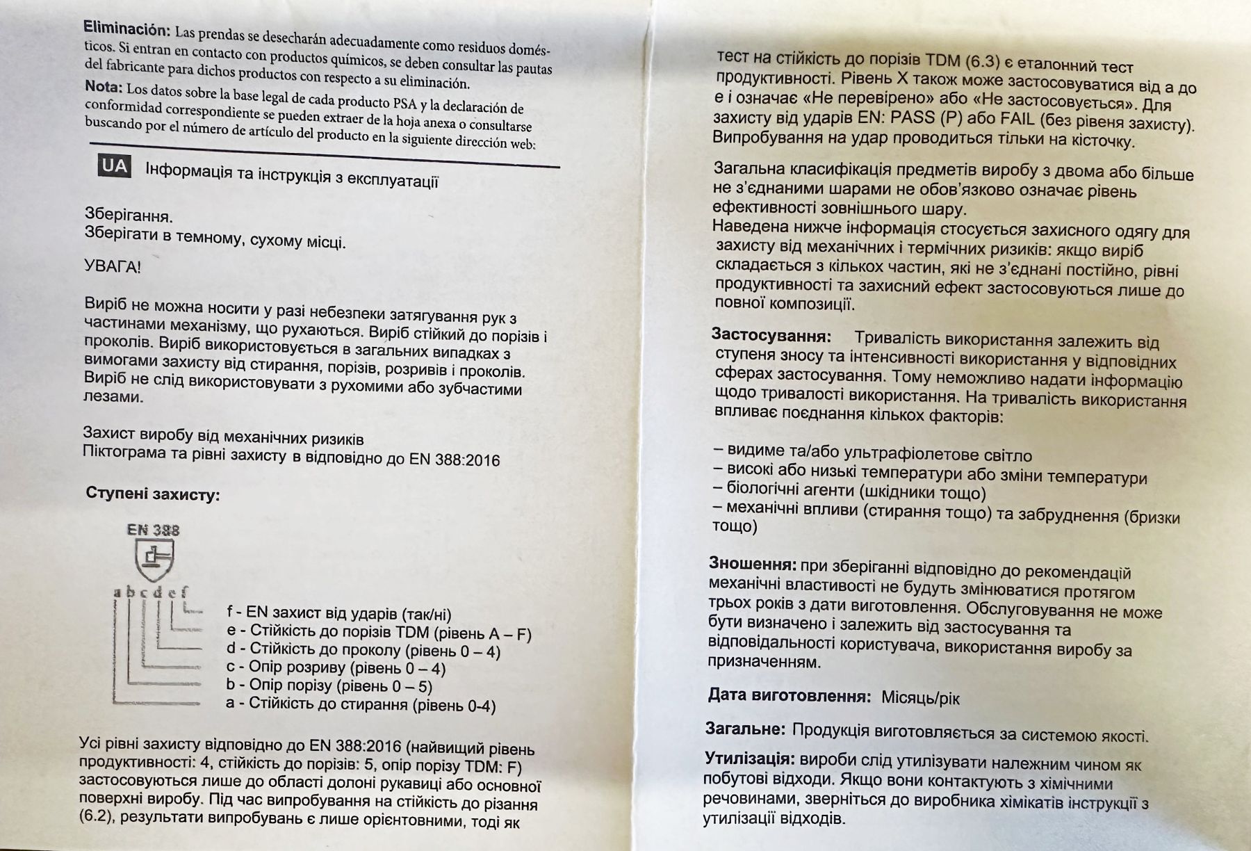 - Рівень захисту відповідно до EN388:2016