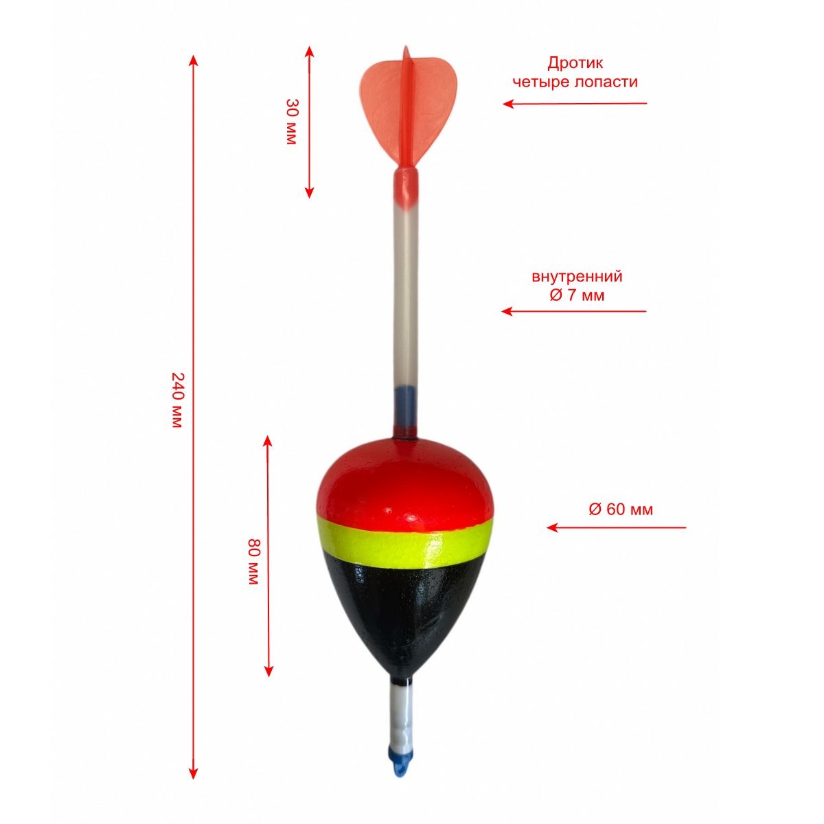 Поплавок для лову товстолоба, хижака XXL - Під світлячок - Червоно-жовто-чорний - 1 шт.