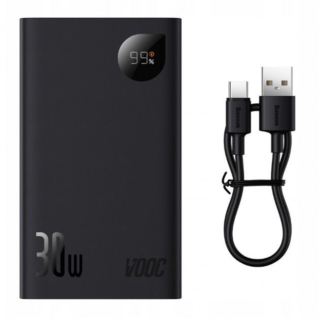 Повербанк Baseus (PPAD050) 20000mAh 30W Adaman2 Digital Display Fast Charge Power Bank With Simple Series Charging Cable USB to Type-C 3A 0.3m Black) - PPAD050001 - Чорний