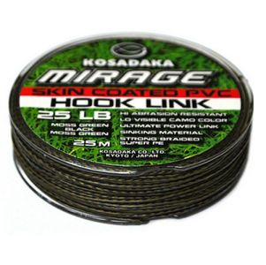 Повідковий матеріал Kosadaka плетений тонучий Mirage 25 м в обплетенні - надійний, високоміцний, тонучий, з високою абразивністю і стійкий до перекручування матеріал, який має оболонку з полівінілхлориду - матеріалу стійкого до механічних та хімічних впливів.