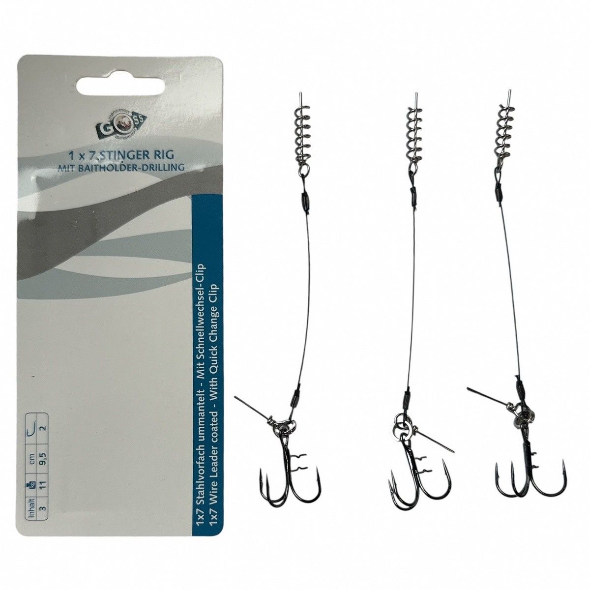 Повідець Goss для оснастки силікону Stinger Rig 1x7 - 9,5 см - Трійник №2 - 11 кг - 1 шт.