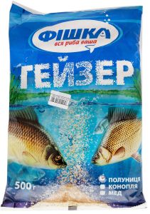 Підгодовування Фішка Гейзер Полуниця - високоякісна дрібнофракційна суміш для лову мирної риби.