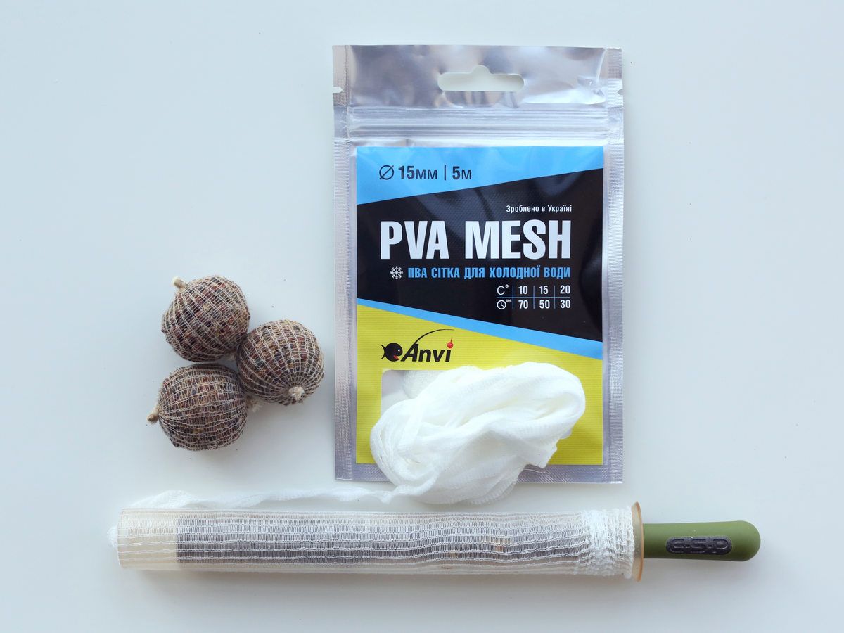 Сітка міцна. Оптимально підібраний розмір вічка в кожному діаметрі сітки ПВА ідеально підходить для використання корму/підгодовування в готових стиках практично будь-якої фракції.