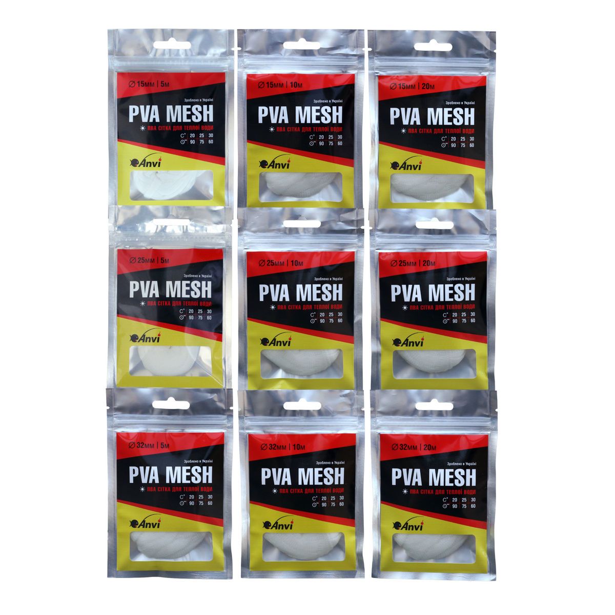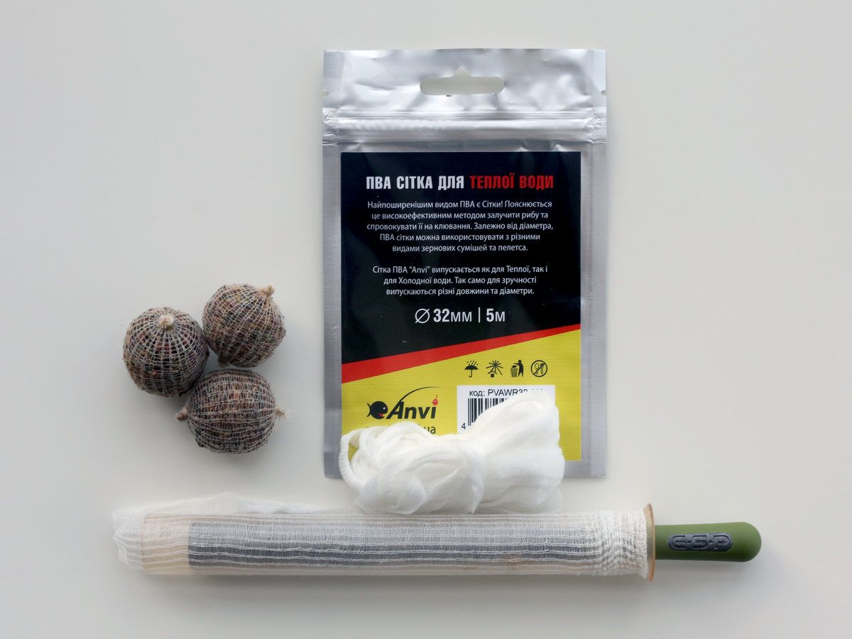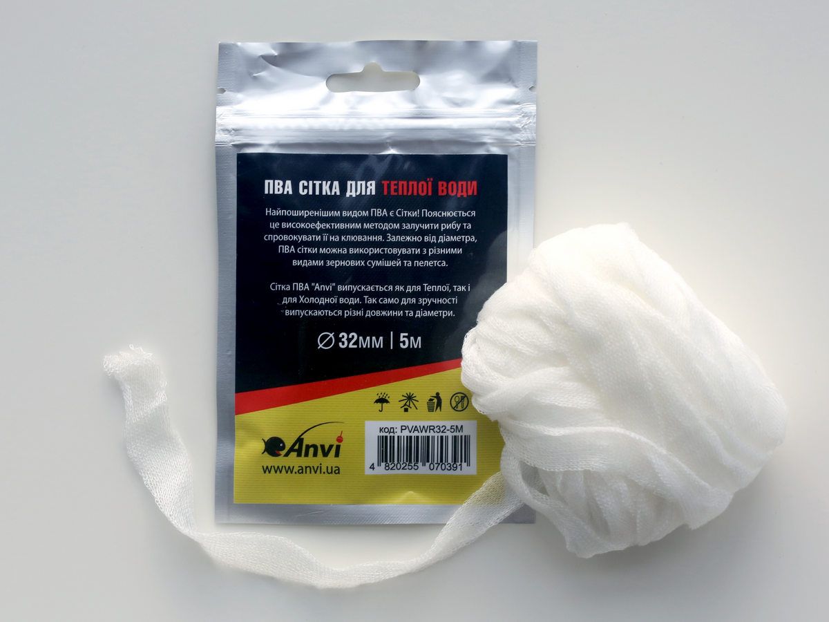 ПВА сітка Anvi PVA Mesh - Повільно розчинна - Для теплої води - Ø32 мм