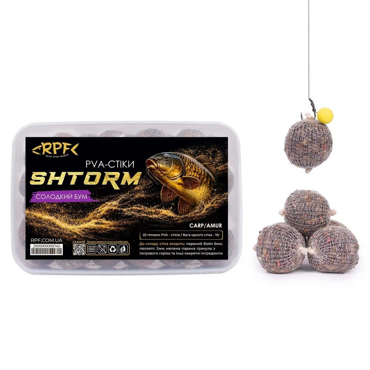 Пропонуємо професійно сформовані ПВА-стіки, виготовлені на основі преміального спод-міксу "SHTORM Солодкий Бум". Це готове рішення для тих, хто цінує якість підгодовування і хоче приділяти більше часу безпосередньо лову риби, а не підготовці.