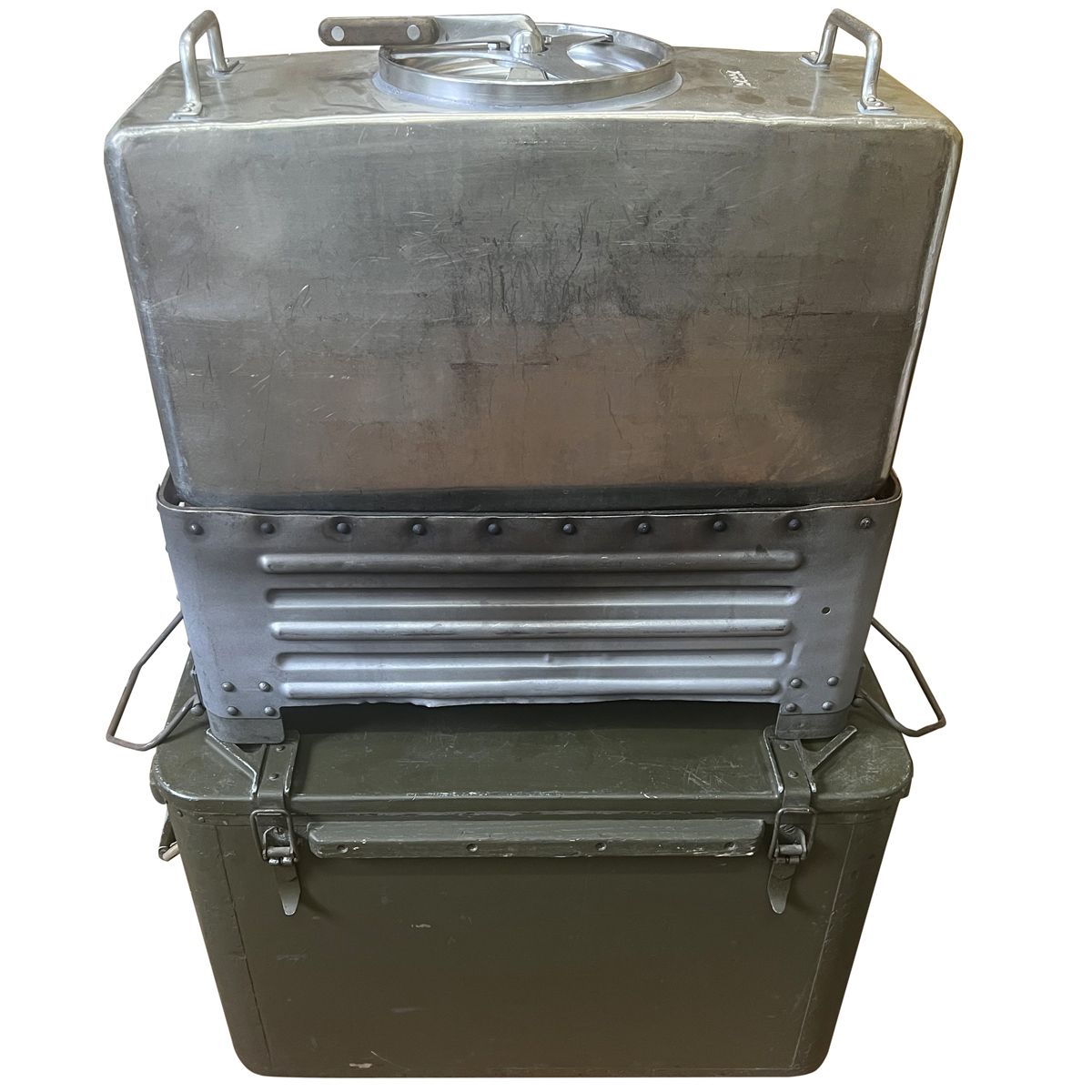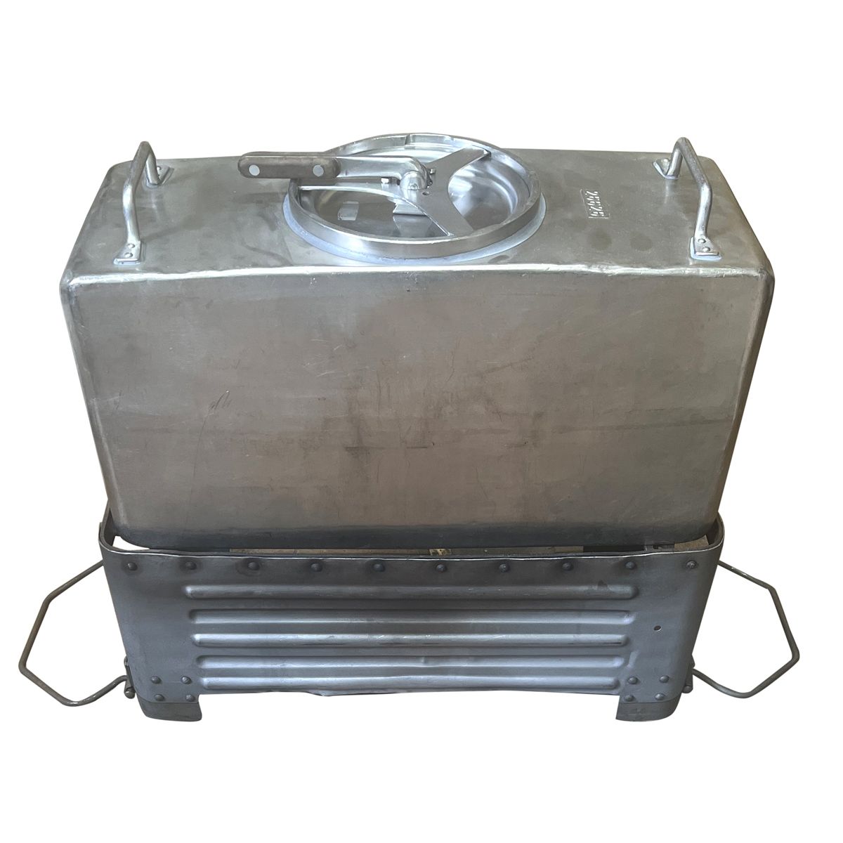 Пищевой бак швейцарского производства состоит из термоса, колбы и подставки для подогрева еды.