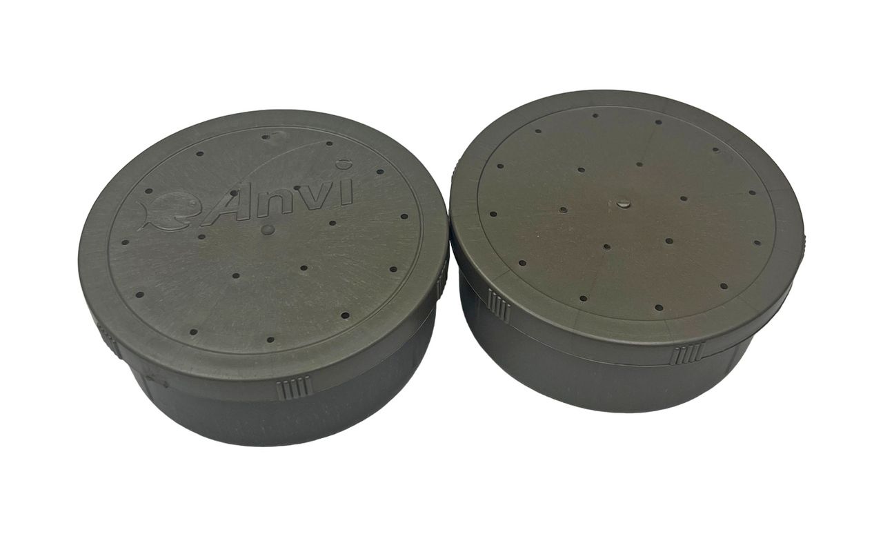 Круглая баночка, для живой приманки для рыбалки. Идеальная для хранения червя, опарыша. Можно использовать для хранения небольших количеств других насадок.