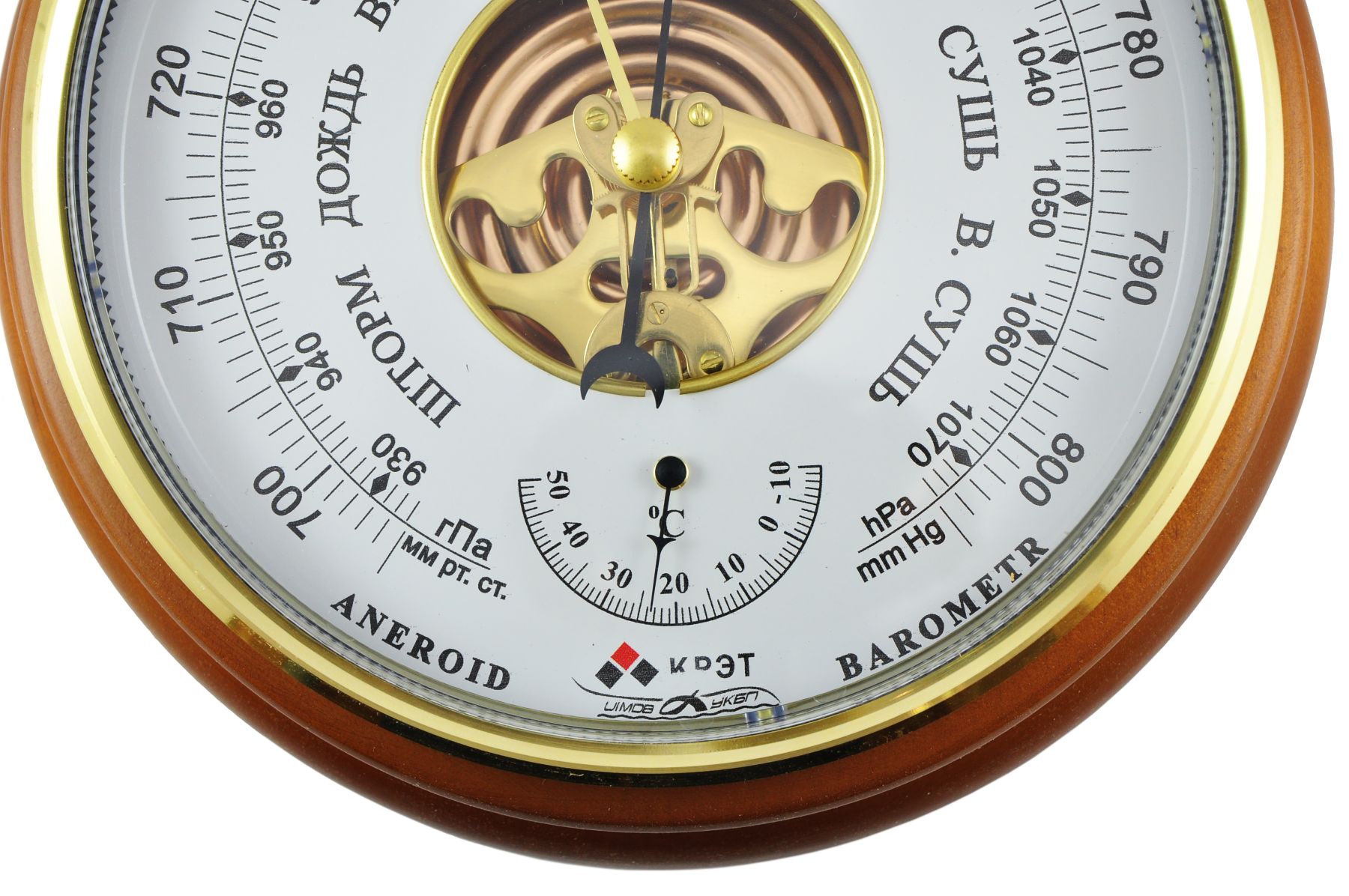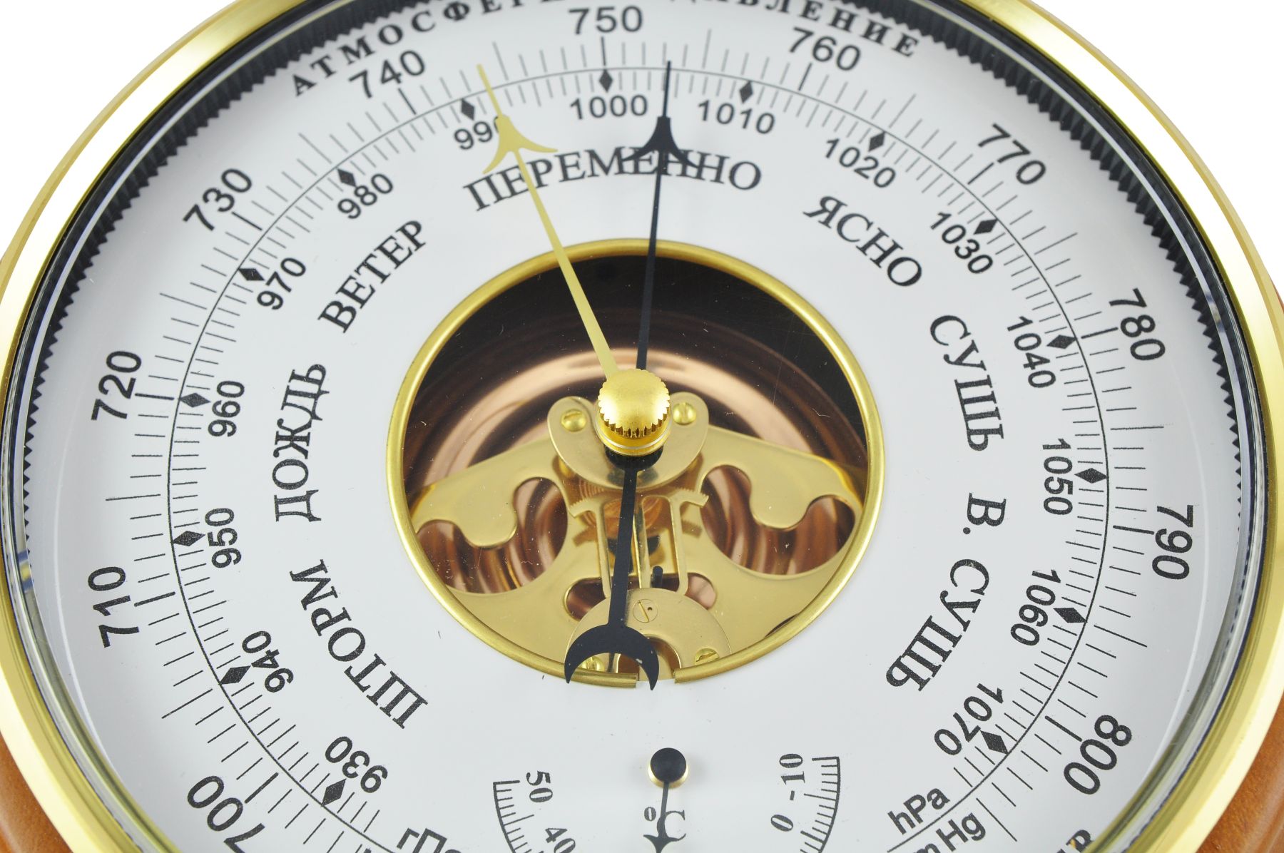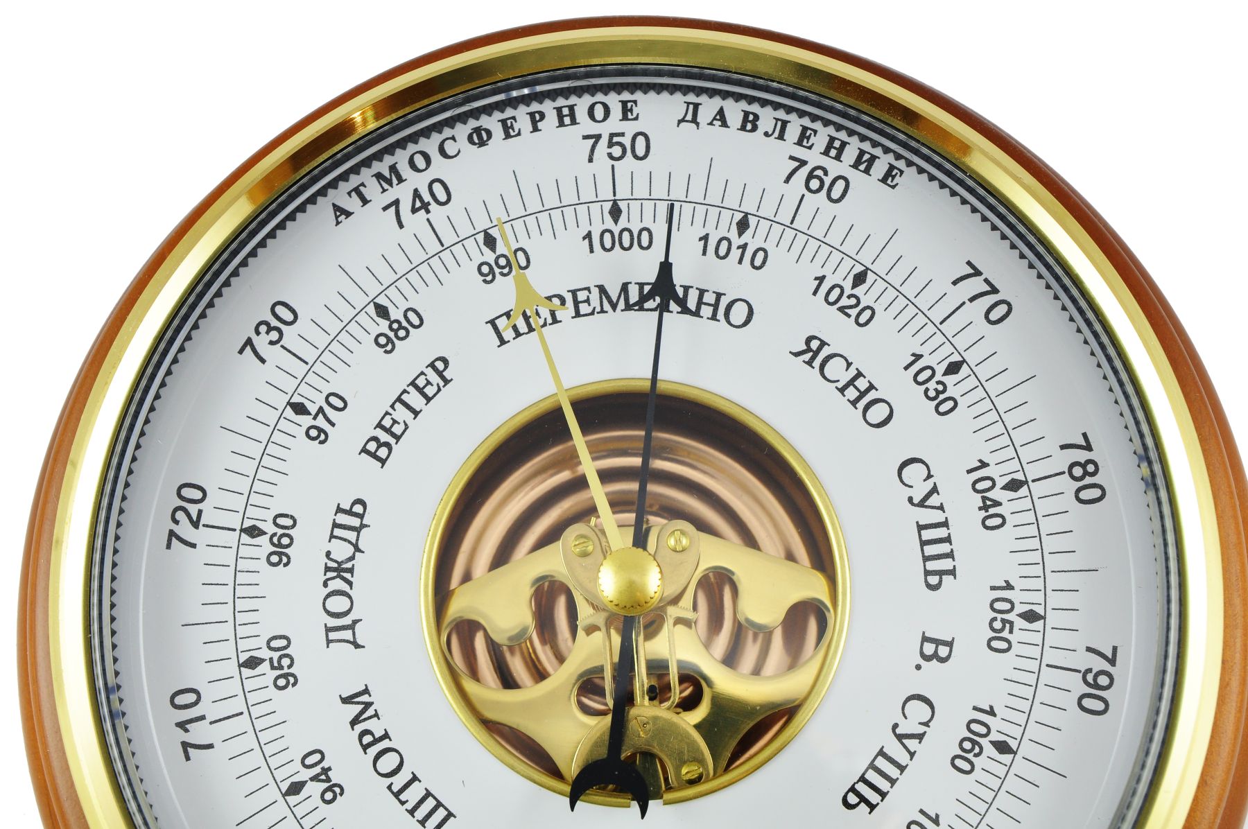 Механизмы барометров изготавливаются из металлов не подверженных коррозии и не реагирующих на воздействие электромагнитных полей. Слаженный механизм чутко реагирует на любое изменение атмосферного давления.