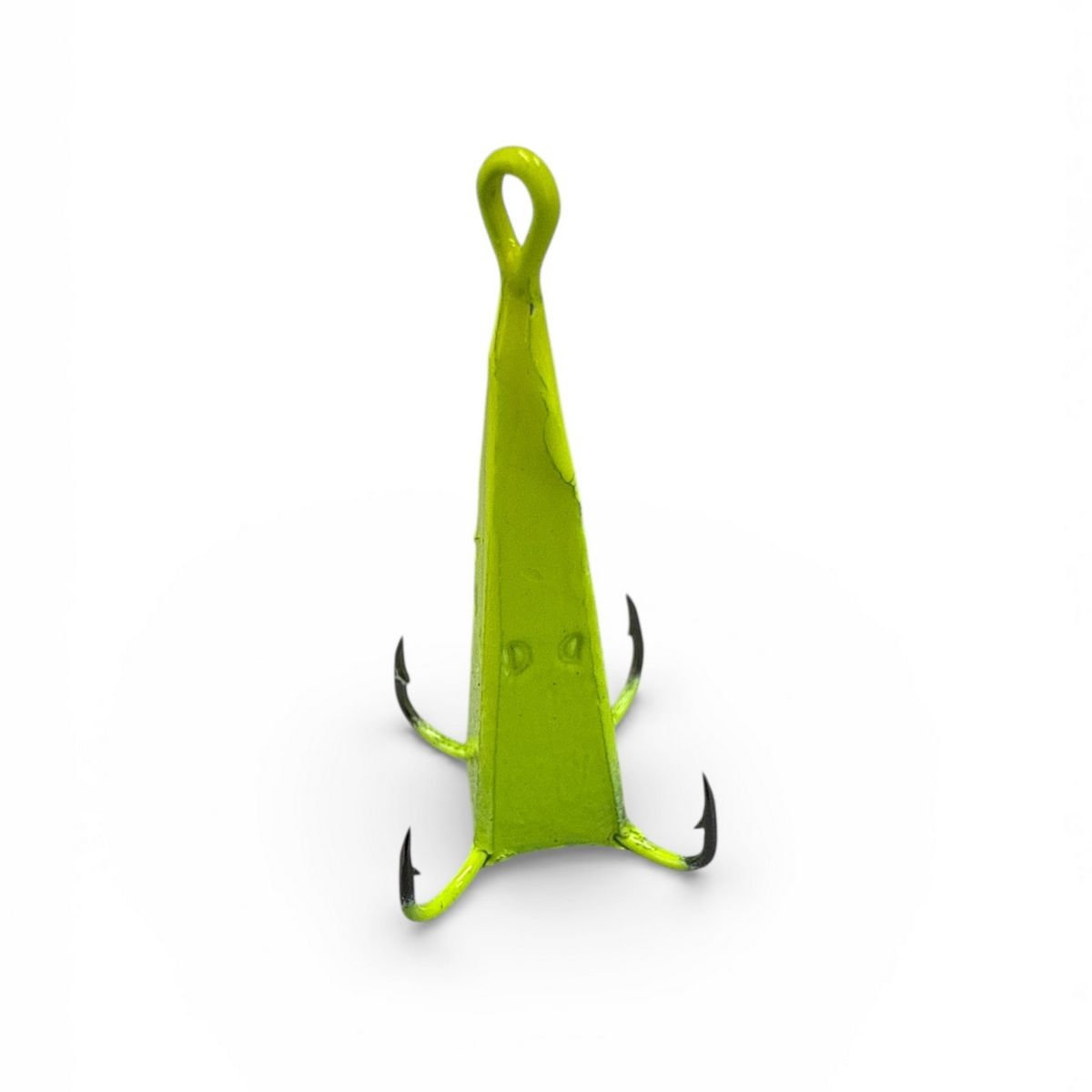 Блесна "Конус большой" от FRY - эффективная вертикальная приманка для отвесного блеснения в зимний период. Ее конструкция с четырьмя крючками (обычно в виде "коромысла" или подвесного тройника/четверника) помогает увеличить шансы на успешную подсечку.