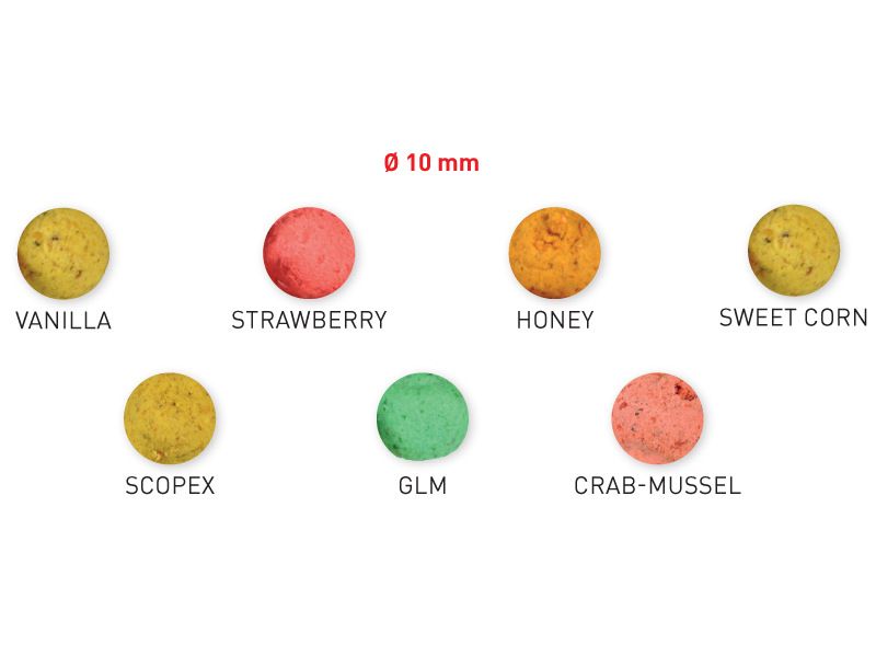 Эти мини-бойлы произведены из натуральных ингредиентов, обогащенных высокоаттрактивными компонентами, а также комплексом и аминокислот, благодаря чему они стимулируют пищевую активность рыб. Отличаются стойким рыбным запахом, именуемым производителем «кальмар и осьминог», который эффективен как в зимне-осенний период, так и в летнюю жару.