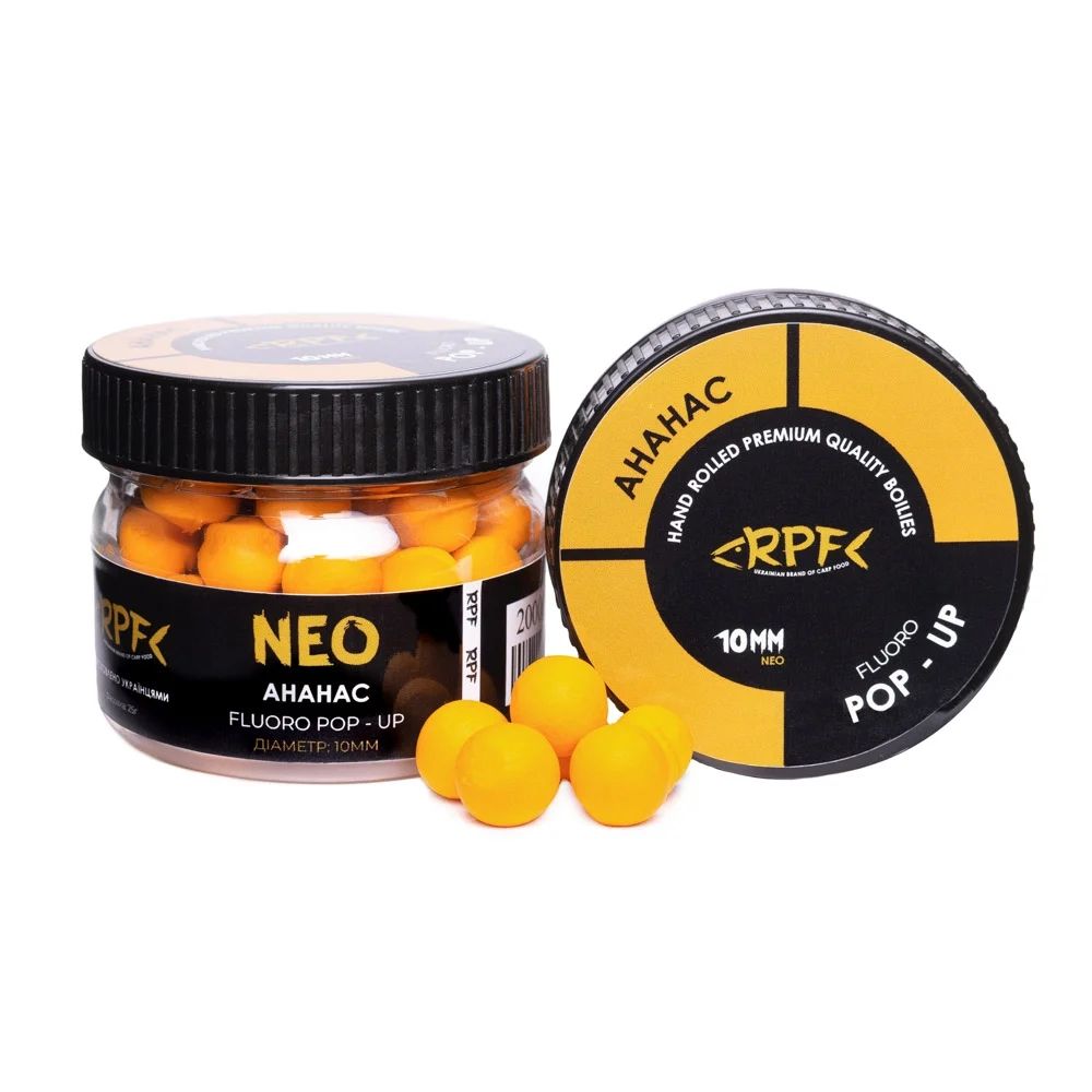 Бойлы RPF NEO Fluoro Поп-ап Ø10 мм - Плавающие - ПЭТ-банка 25 г - Ананас