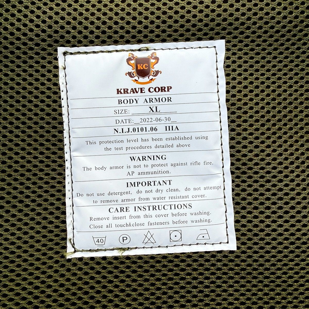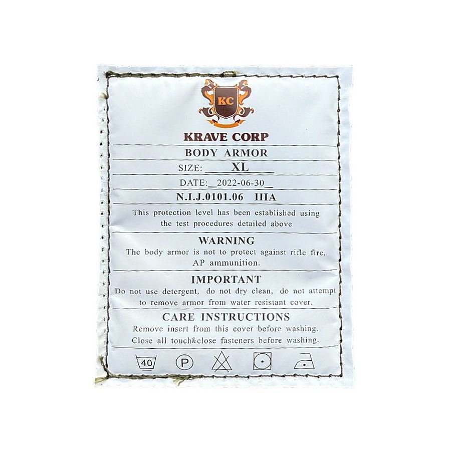 Бронежилет Krave Corp - Размер XL - Класс защиты N.I.J.0101.06 IIIA