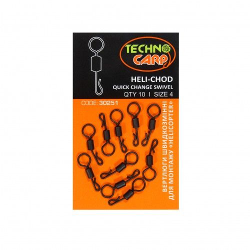 Специальный быстросъемный вертлюг для «вертолетного» монтажа предназначен для крепления и быстрой замены поводков в монтажах «вертолет» или «чод». Имеет увеличенный диаметр ушка для обеспечения свободного вращения и движения поводка на лидкоре. Используется в паре с хвостовиком.