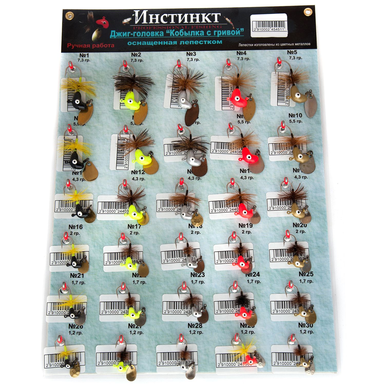 Джиг-головка Инстинкт "Кобылка с гривой" и лепестком - 1,7 г - Набор 30 шт.