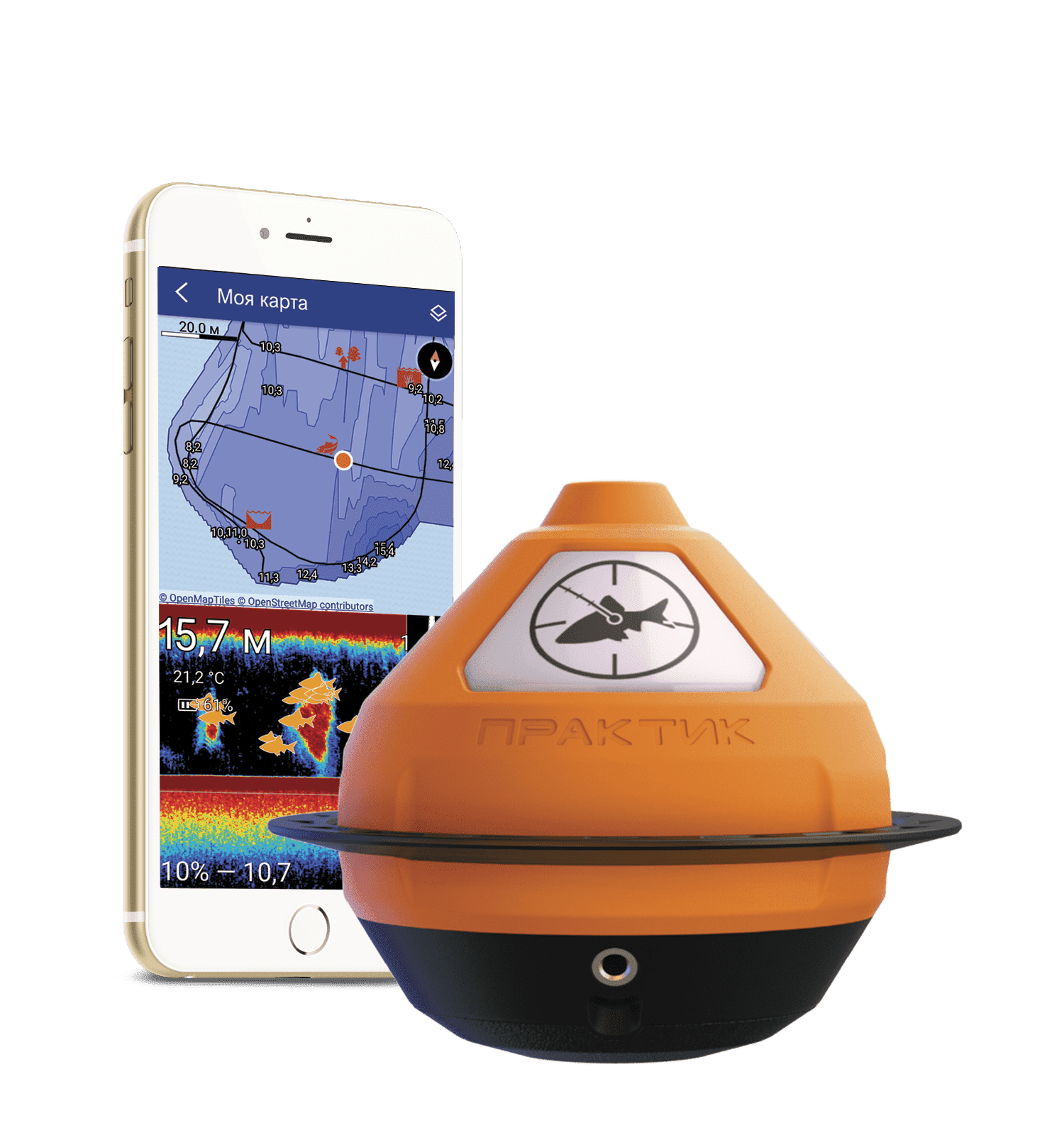 Эхолот Практик 7 wifi представляет собой беспроводной датчик "Маяк". Работа прибора заключается в соединении с планшетом или смартфоном, на который необходимо предварительно загрузить бесплатное приложение "Эхолоты Практик 7".